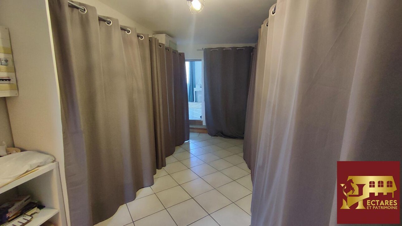 De 170 m2 environ elle est aménagée avec 2 à 3 boxes, et de 2 autres espaces de rangement, préparation/soins, sanitaires avec douche et toilette.