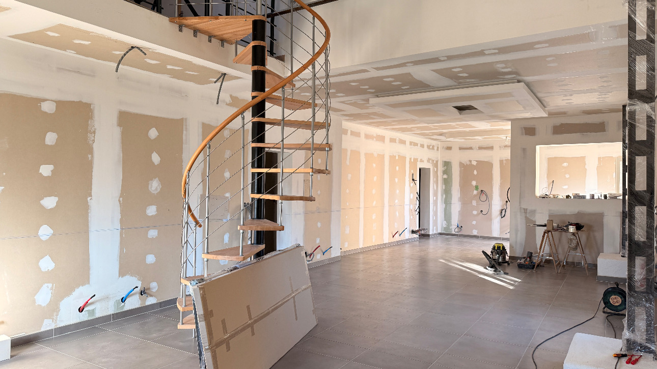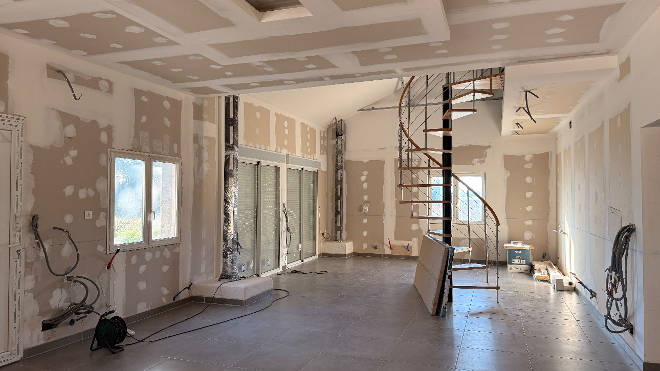 The main body of the buildings consists of two living spaces and an old shed, allowing for numerous developments. The main house, with a loft atmosphere, is currently being fitted out and remains to be finalized according to your wishes. Facing south, it benefits from a large courtyard and beautiful natural light.