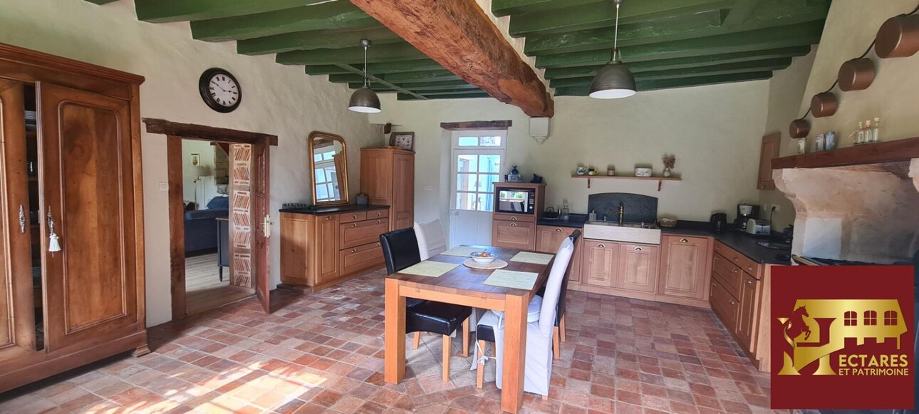 Nichée sur 7,5 hectares, cette charmante longère rénovée de 146 m² vous séduira par ses atouts. Vous y découvrirez une pièce de vie chaleureuse avec une cheminée à insert, une grande cuisine aménagée et équipée, ainsi qu'un espace parental comprenant un patio, une chambre confortable, une salle d'eau et un WC. A l'étage, deux grandes chambres (20 m² chacune), un espace bureau, une salle d'eau et un WC vous attendent. De plus, une pompe à chaleur a été installée en 2022 pour votre confort.