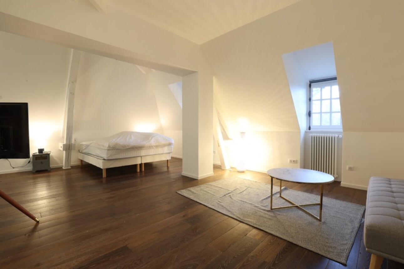 On the second floor, there are three attic suites measuring 34, 48, and 49 square meters (floor area) and one smaller suite of 31 square meters. All suites have a bathroom, a toilet, and a sitting area. There is also a small utility room.