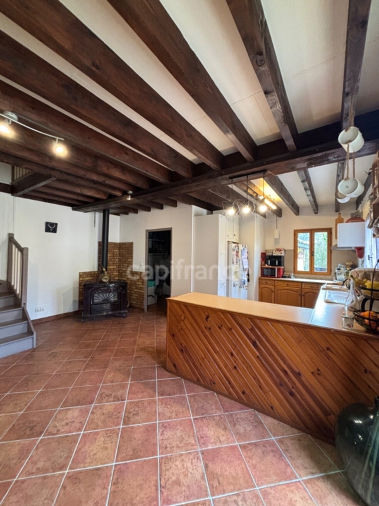Il est également possible d'aménager toute la partie basse de la maison, ce qui doublerait sa superficie. Côté technique, la maison est équipée de double vitrage et d'une pompe à chaleur avec chauffage au sol.