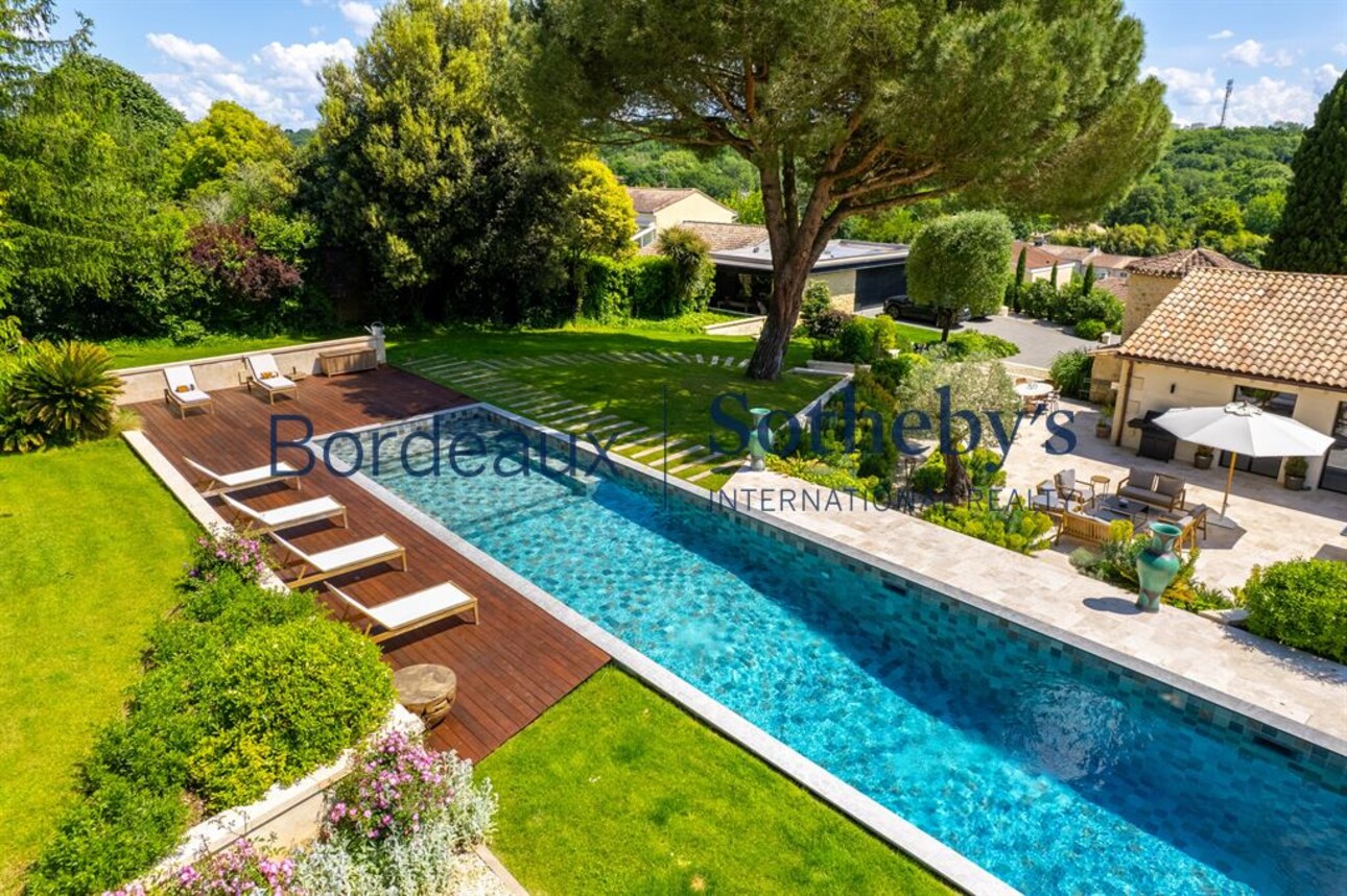 Just 12 kilometers from Bordeaux, in a preserved and highly confidential setting, this exceptional property—fully renovated by renowned architect Hybre—unfolds across more than 8,000 m² of beautifully landscaped grounds.