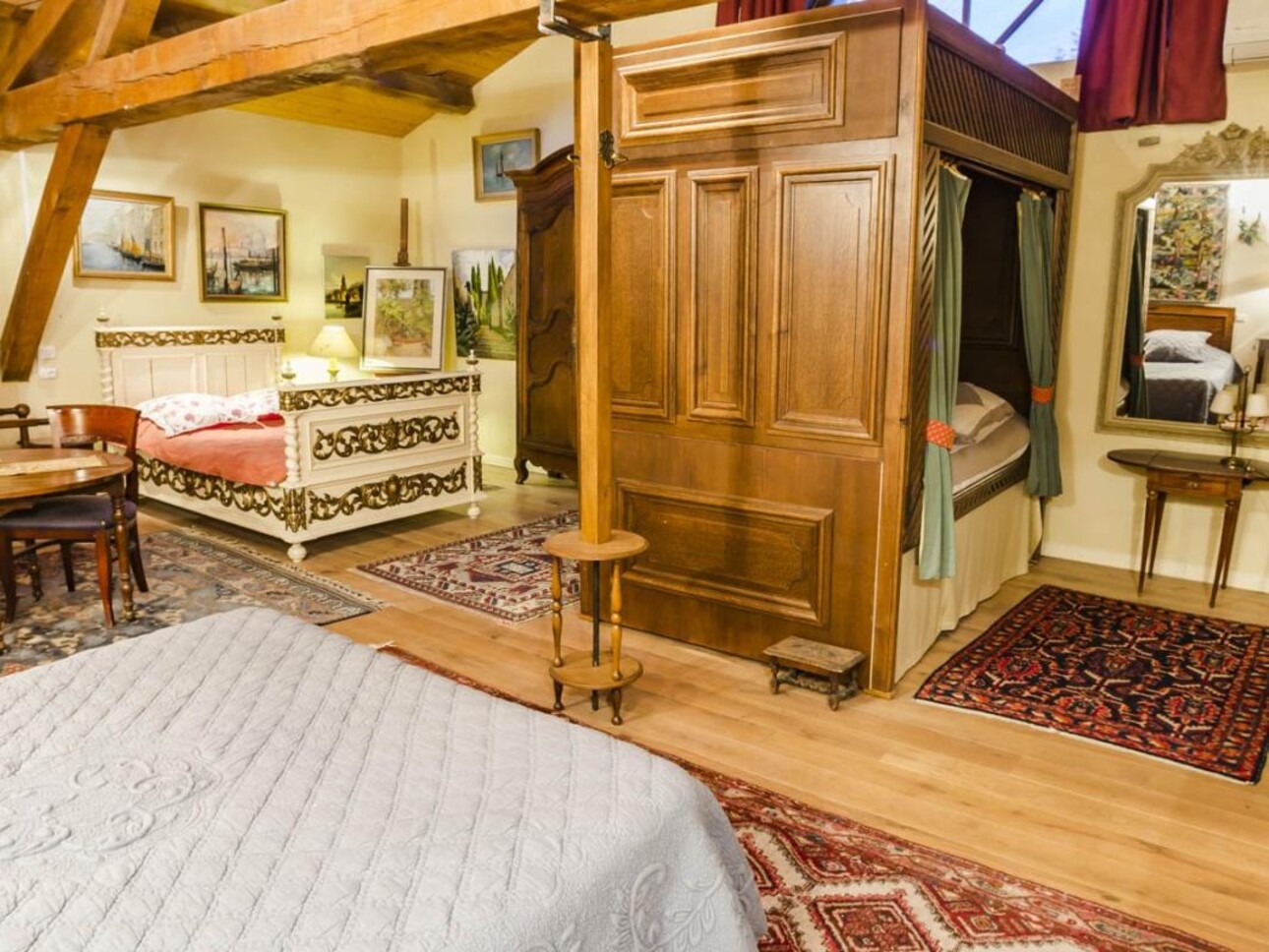 • Second Floor: 2 bedrooms (sleeping up to 6 people, air-conditioned), including 1 with an authentic box bed.