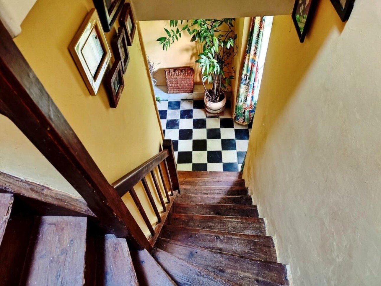 Two wooden staircases leading upstairs..