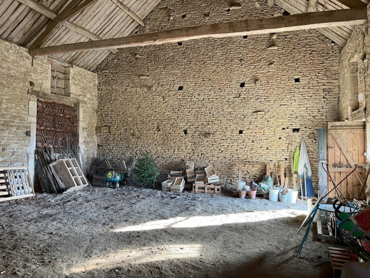 De nombreuses dépendances offrant un potentiel exceptionnel : Grange & porche attenant à la maison ( 306 m² ), étable ( 263 m² ), atelier ( 38 m² ), chaufferie ( 31 m² ), 2 caves voûtées.