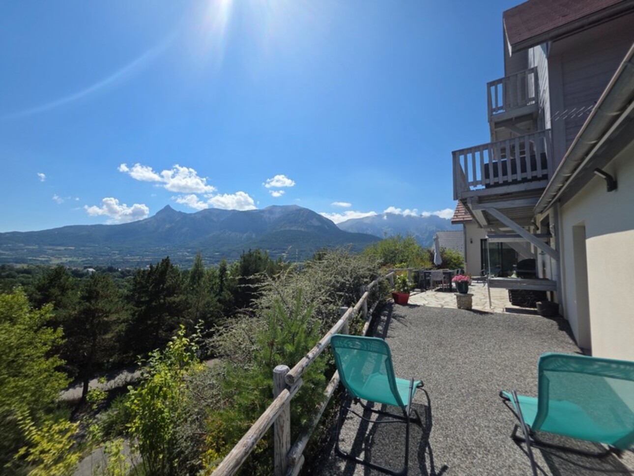 Located in the heights in a privileged natural setting, I offer you this property which offers an exceptional panorama of the surrounding mountains with an ideal exposure guaranteeing brightness and sunshine throughout the day. A rare place combining comfort, authenticity and modernity a few minutes from the heart of Saint-Bonnet-en-Champsaur and its amenities. Located on a plot of 1700m² it consists of two independent dwellings each with its own identity: