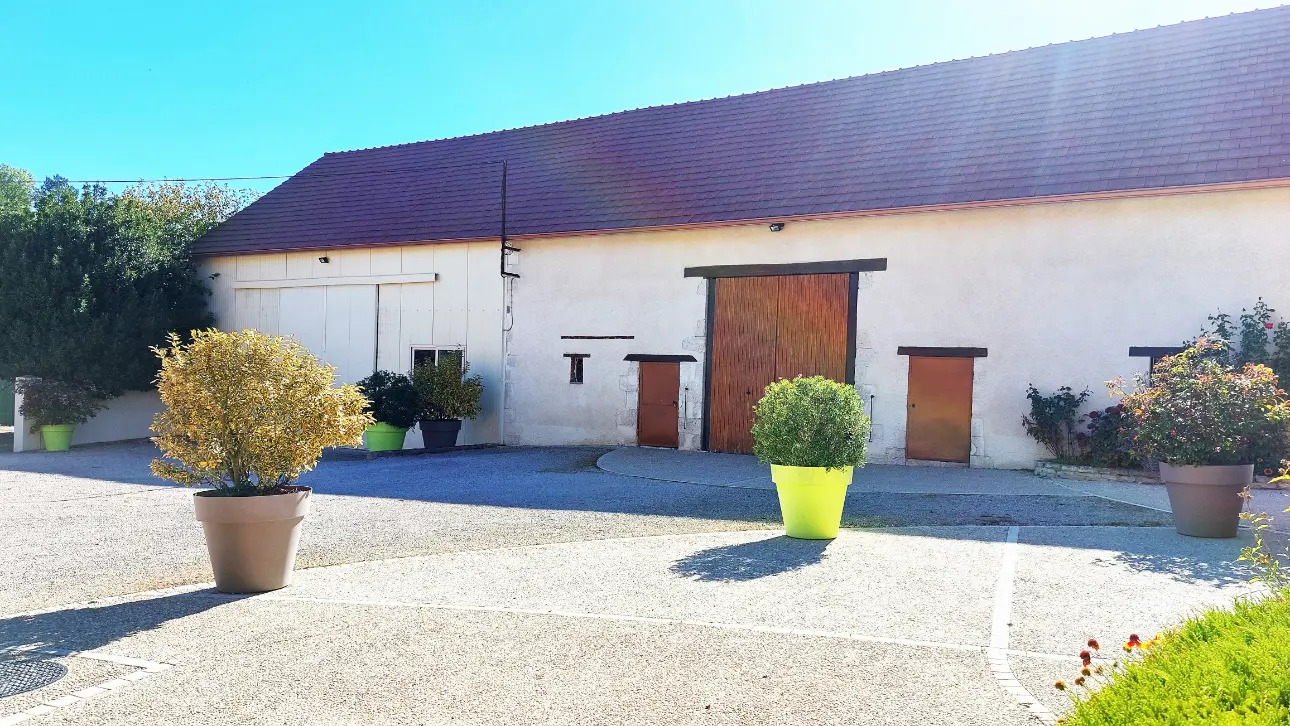 Outside there is a 44 m² tiled terrace with covered barbecue area, boiler room and semi-buried cellar. The fully mineralized courtyard, accessible by motorized gate, gives access to a 300 m² barn supplied with water and individual electricity equipped with a cold room and summer kitchen which could be transformed into a gite or reception room.