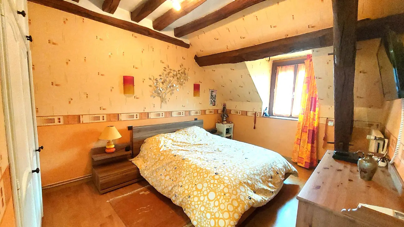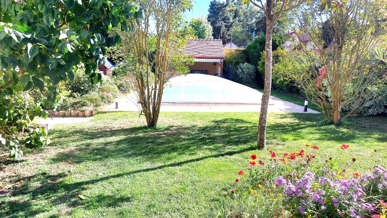 In addition, there is a 50m² garage that can accommodate two vehicles, a metal shed for storing materials, 1 closed kennel, 2 annex buildings converted into an artist's studio. The rear of the property, completely fenced and partly bordered by the river, lets you discover a 10ml x 5ml swimming pool covered and heated with its pool cover for your summer evenings, all overlooking the vegetable garden and its greenhouse.