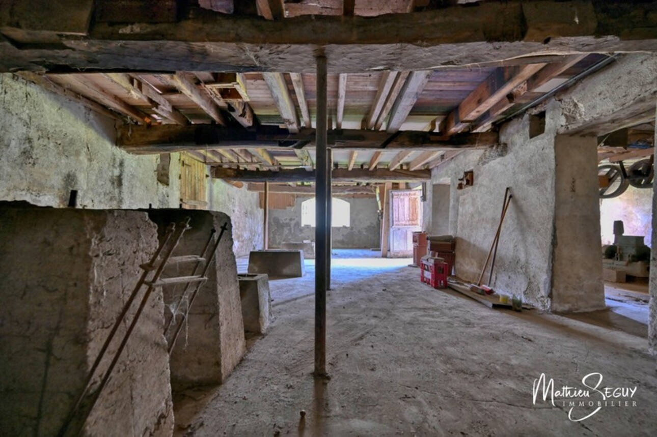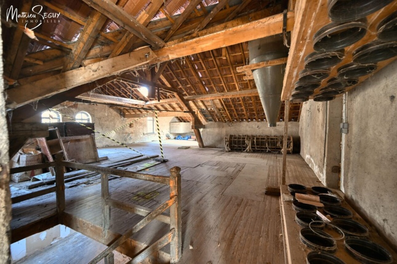 L'ancien moulin, quant à lui, totalise plus de 610 m² de superficies, toutes avec une belle hauteur sous plafond. Chargé d'Histoire, il conserve les traces de l'activité de l'époque. Il devra conserver sa vocation de dépendance, sans pouvoir être aménagé mais offre un potentiel XXL pour les professionnels ou les passionnés en recherche de généreuses dépendance.