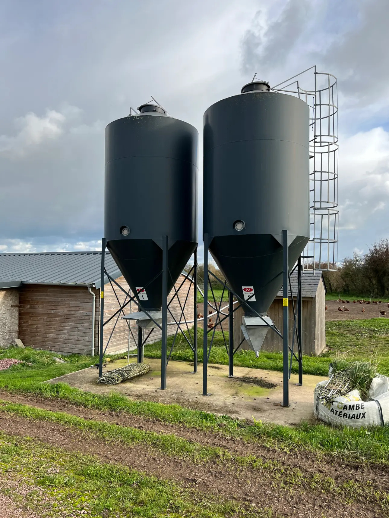 - Un bâtiment technique et 2 silos pour l'alimentation,