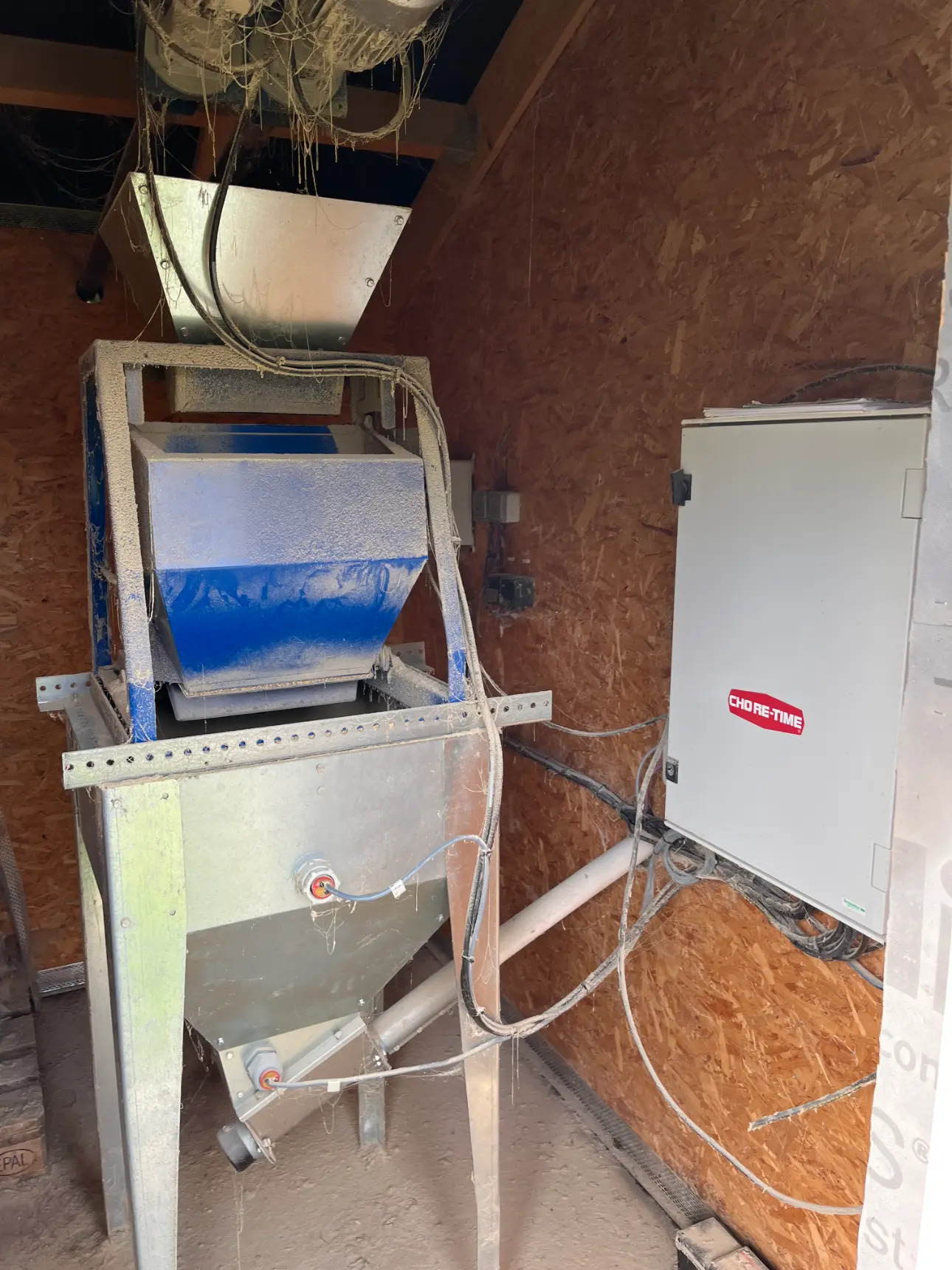 - 3 poulaillers de 120 m² avec une capacité maximale de 1650 poules pondeuses, chacun équipés d'un système d'alimentation avec distribution automatisé,