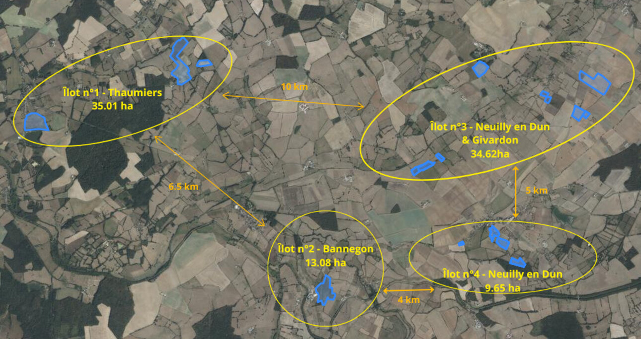 Îlot 3 : 34,62 ha sur les communes de Neuilly-en-Dun et Givardon (remise en état à prévoir)