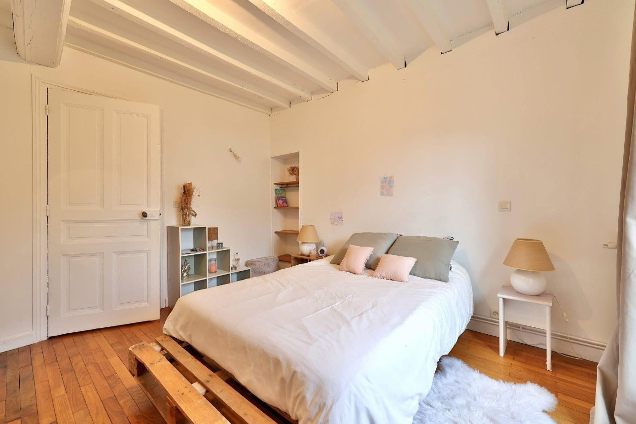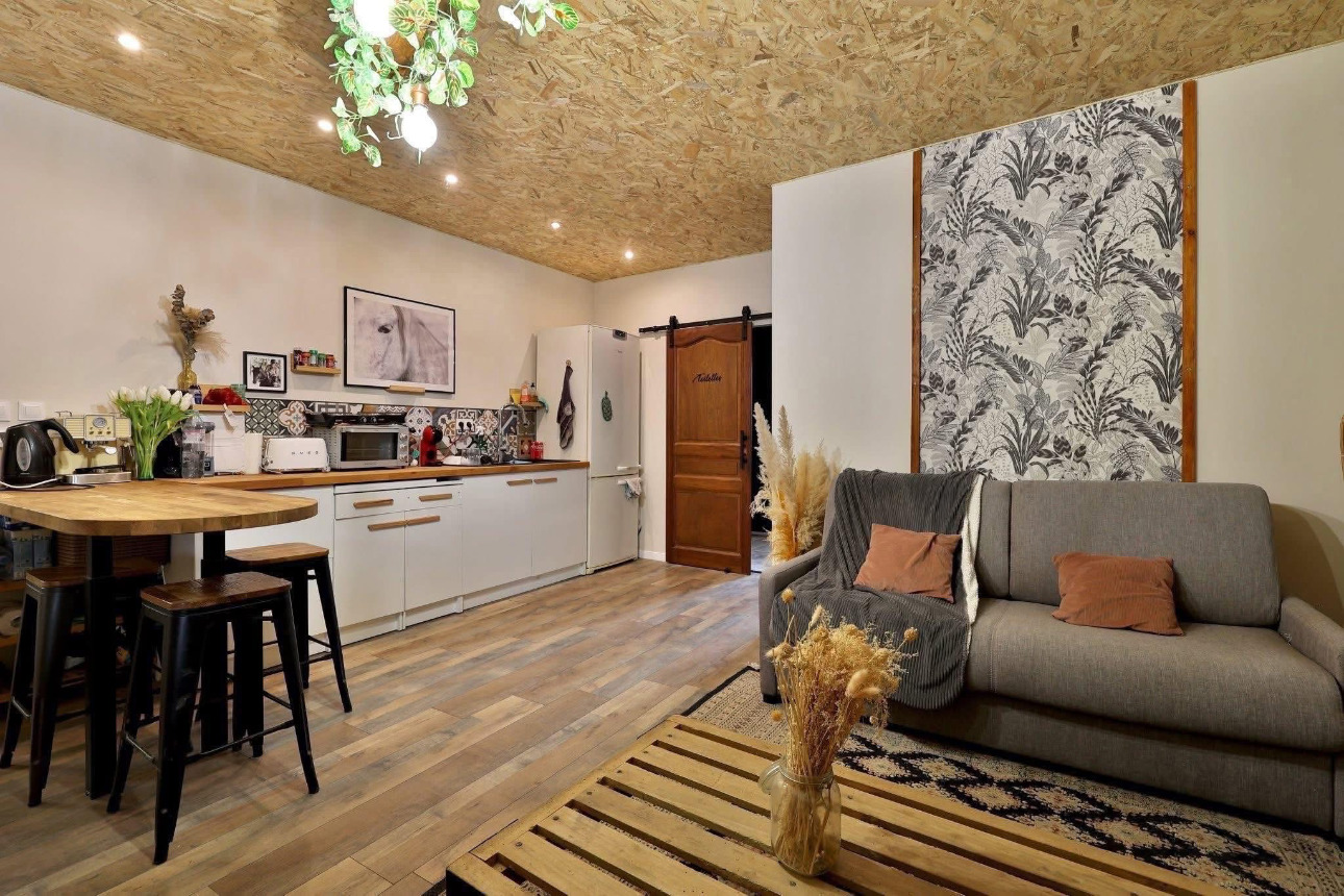 Sous une façade aux teintes chaleureuses et volets bleus, cette maison d’environ 140 m² séduit par son caractère unique, son charme authentique et son atmosphère conviviale.
