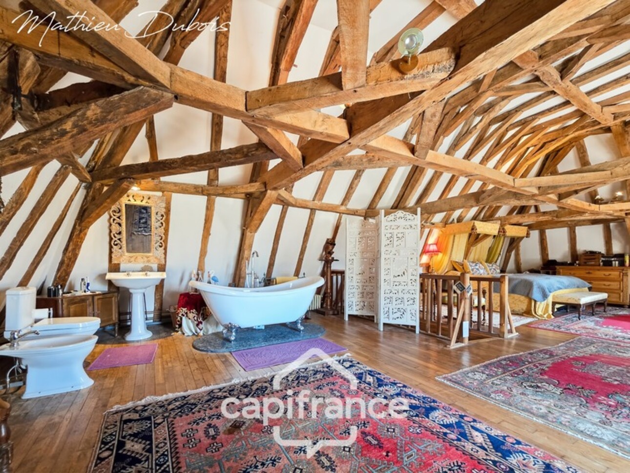 - Trois suites parentales, dont une majestueuse sous la charpente “bateau” d'origine. Deux autres chambres, salle de bains, dressing, et de beaux dégagements structurent les étages.