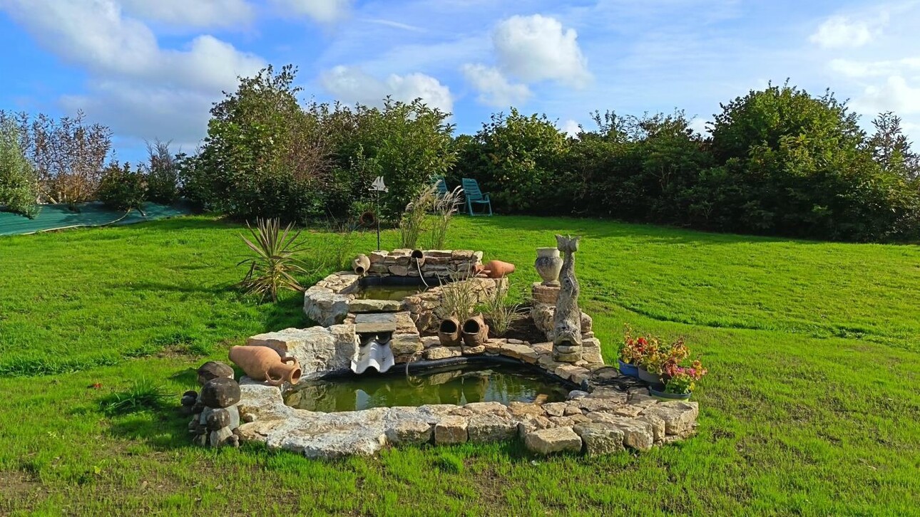 Implantée sur 2 hectares , la propriété s'ouvre sur un élégant portail en fer forgé avec piliers en granit suivi d'une allée arborée . Le jardin paysagé , agrémenté de deux bassins en cascade , d'un puit , de 2 carports et de haies d'ornement prolonge la quiétude des lieux . Les prairies clotûrées , traversées par un ruisseau ainsi qu'une écurie de pré , séduiront tout particulièrement les amateurs de nature et de chevaux .