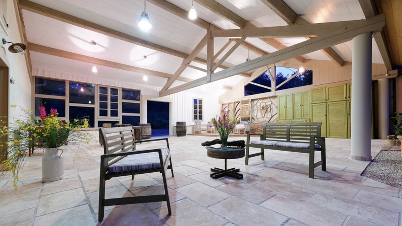 La MAISON DE MAITRE(220m2)avec un séjour de 80m2, quatre gîtes (75/55/35/30m2), le préau appuyent l'esprit d'accueil de la gasconne.