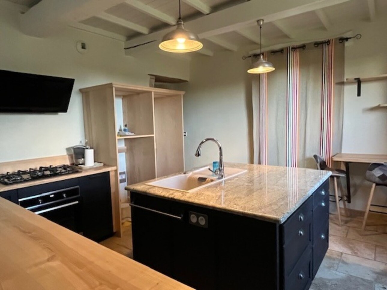 La recherche d'authenticité n'exclut pas le confort actuel exigé: chauffage central à granulés, fenêtres double vitrage bois et aluminium, cheminées, placards, radiateurs ouvragés en fonte, cuisines et salles d'eau récentes côtoient génoise, épis de faitage, pierres gréseuses d'encadrement, travertin...