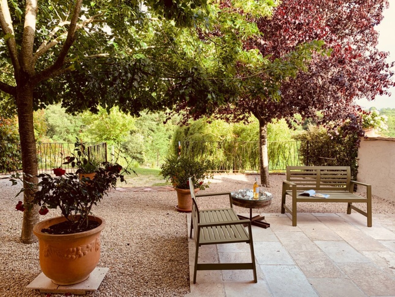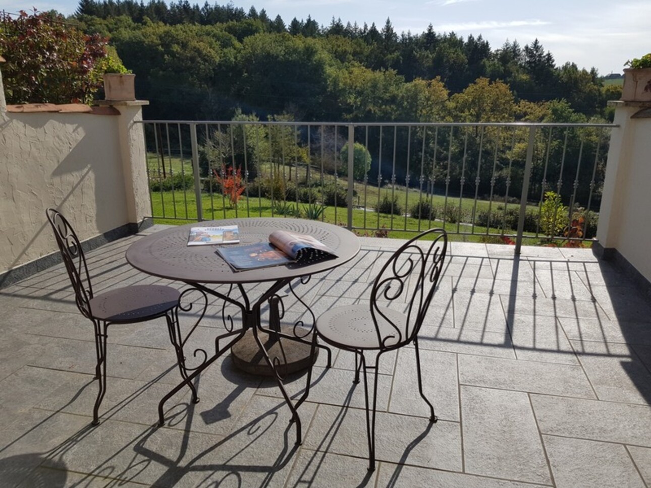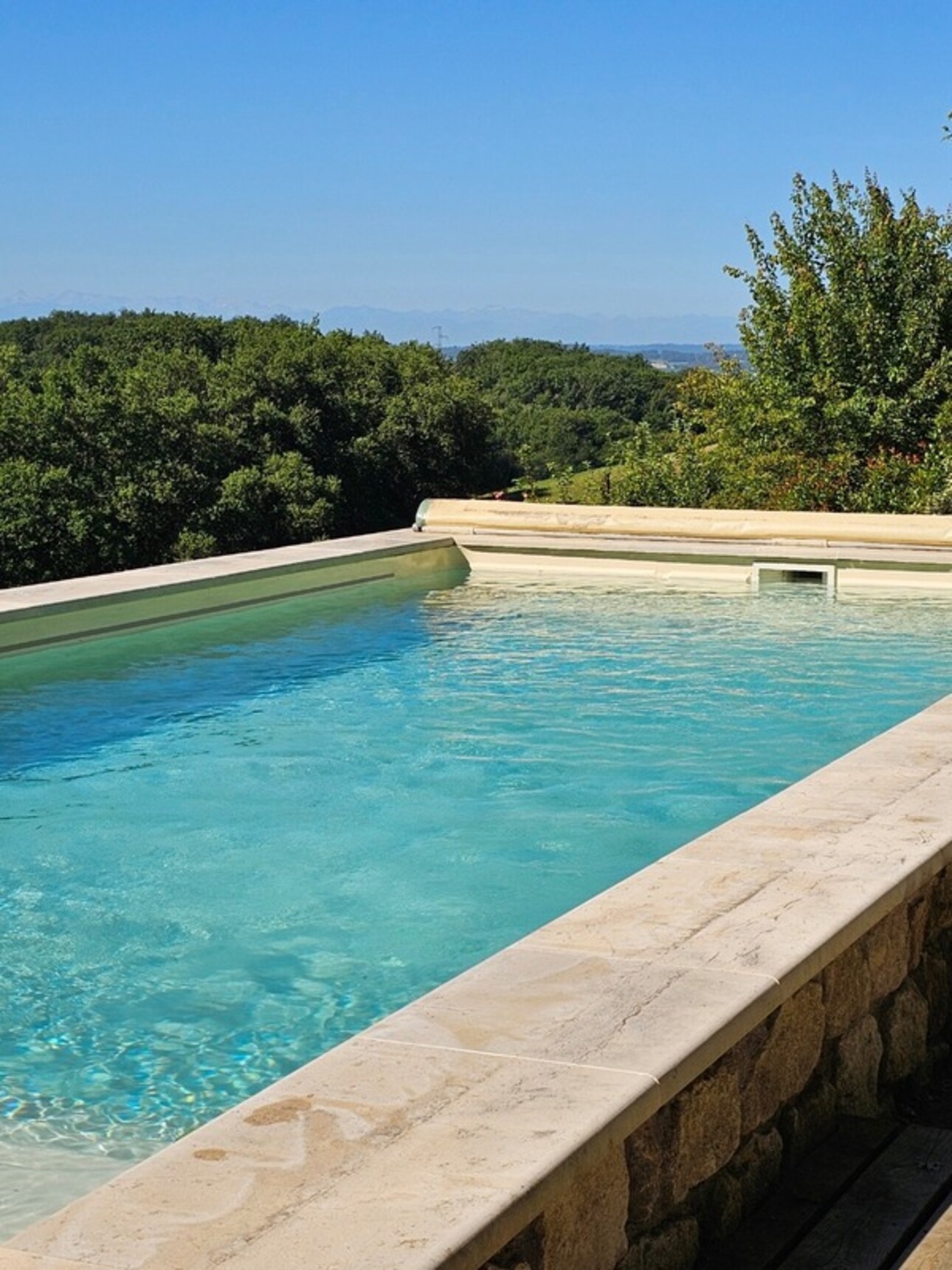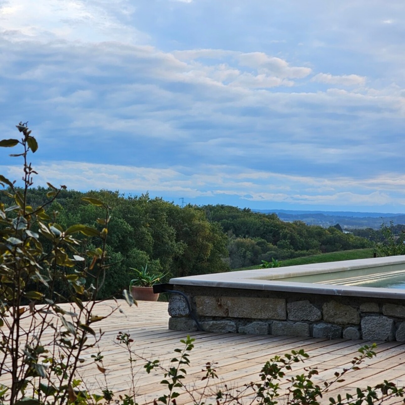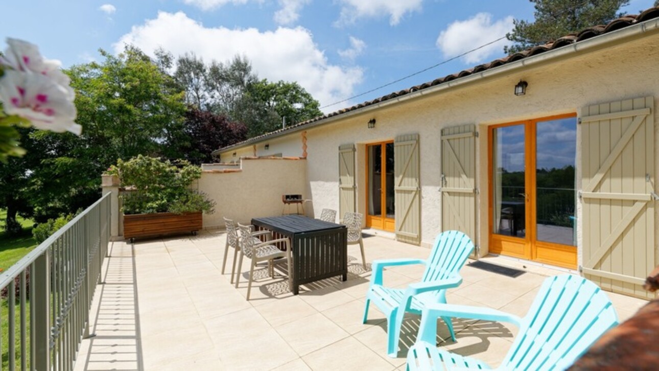 Les terrasses, la piscine récente, le terrain vallonné et partiellement boisé, permettent de profiter des paysages.