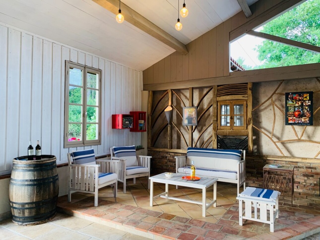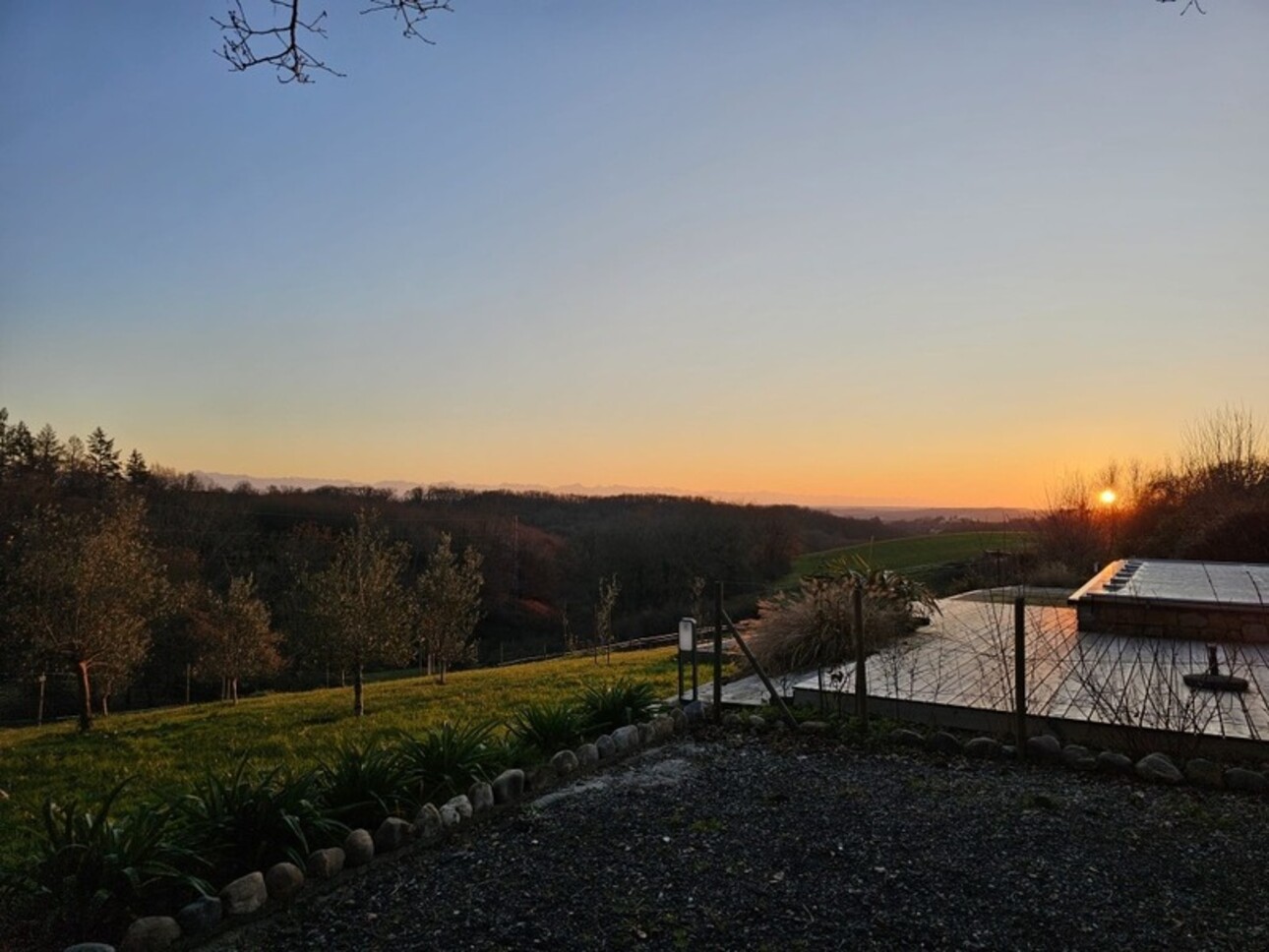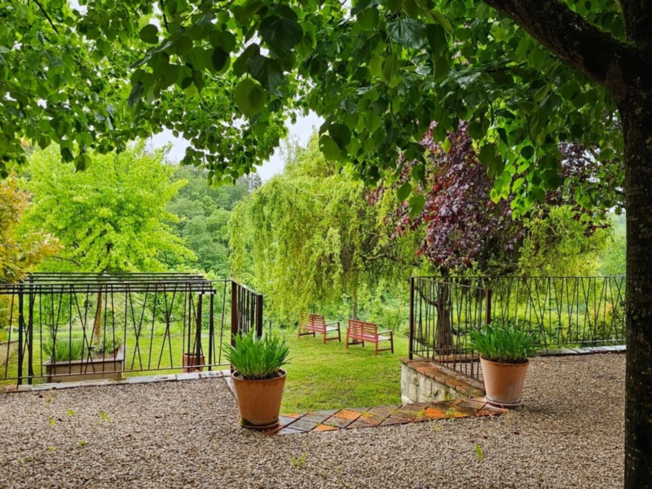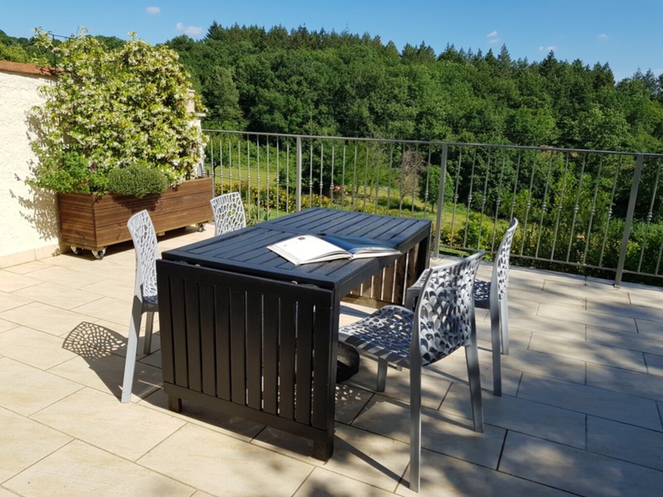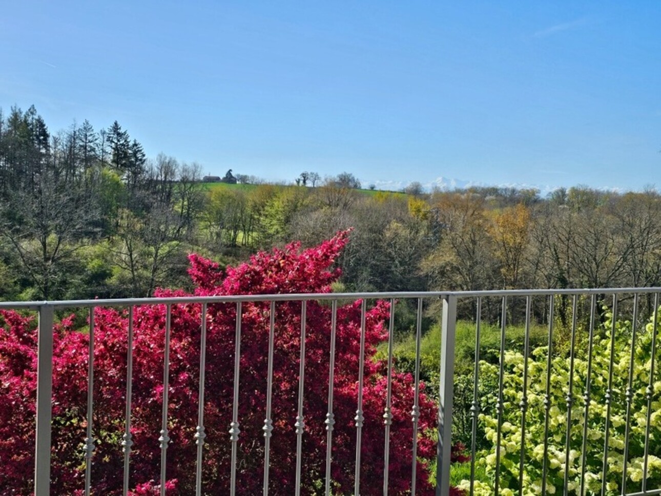 Les terrasses, la piscine récente, le terrain vallonné et partiellement boisé, permettent de profiter des paysages.