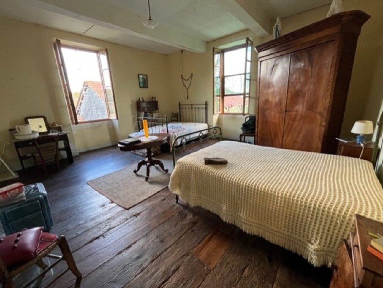 L'étage: quatre chambres, un point d'eau. Il serait aisé de finir ou créer deux salles d'eau, palier.