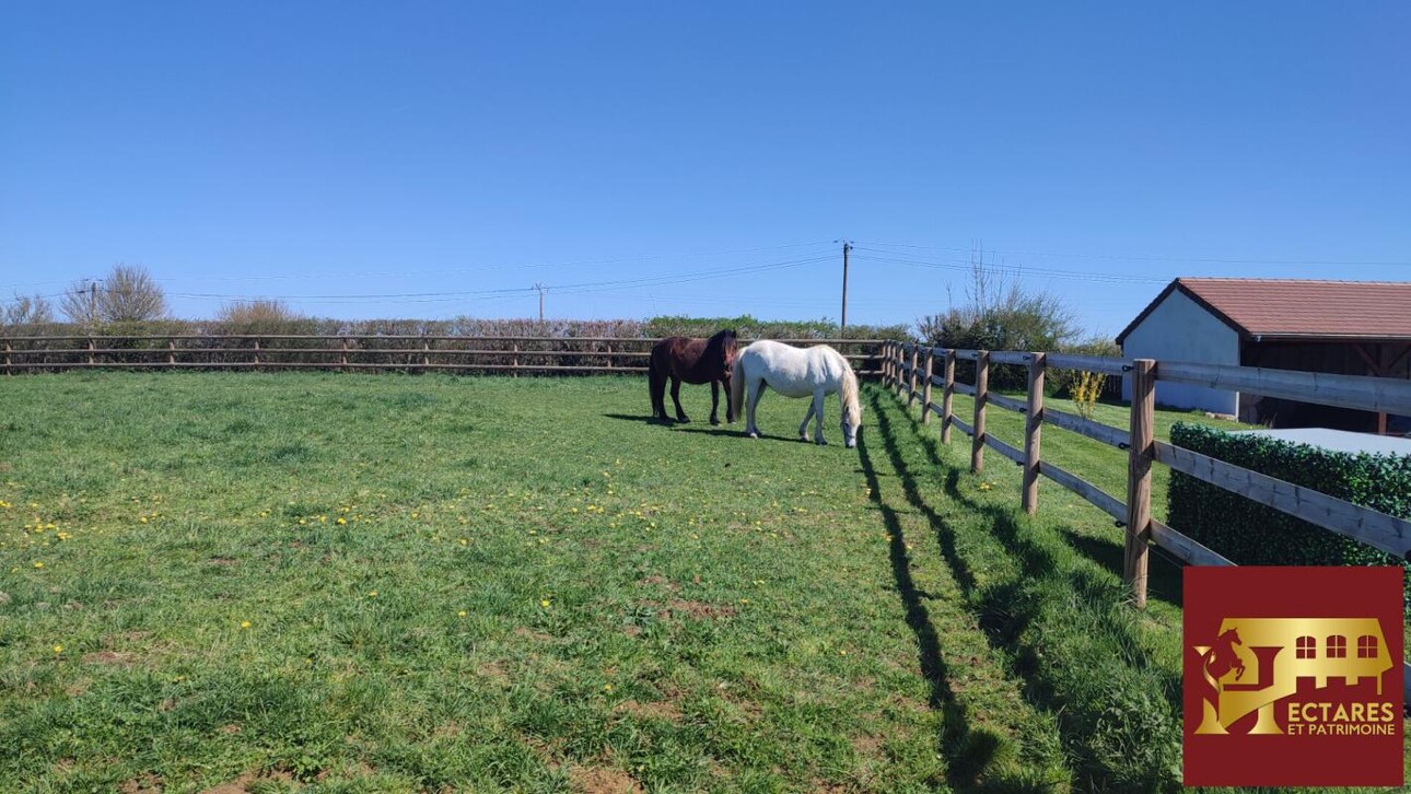 La maison est entourée des terrains constitués de belles prairies délimitées de haies. De belle barrières bois délimitent la partie maison de la partie équestre.