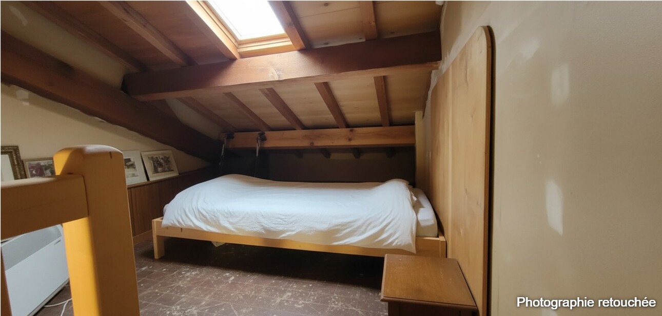 À l'étage, une mezzanine aménagée en chambre reste à finaliser.