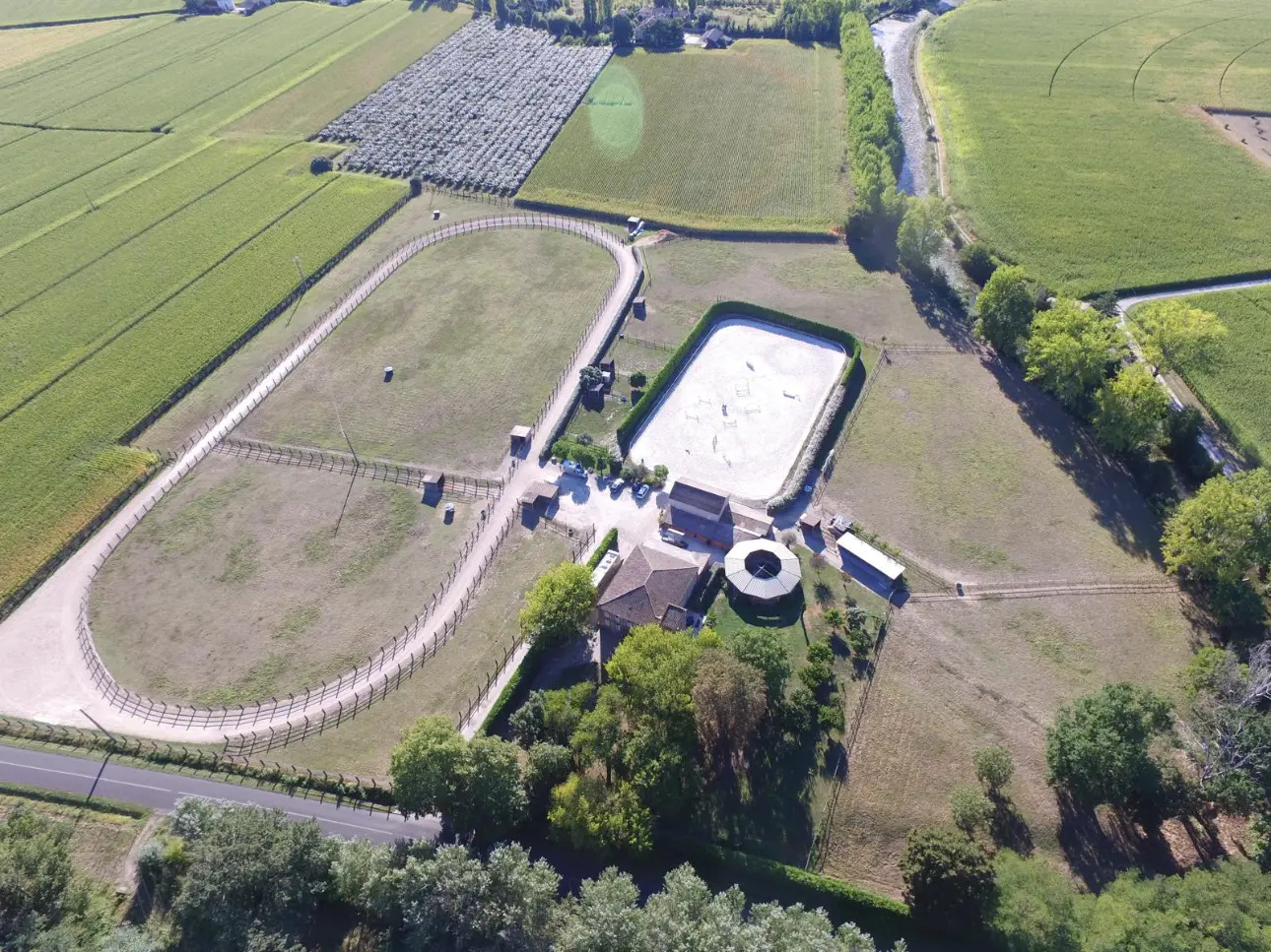 - Entraînement pro : une magnifique carrière de 46x80m en sable fibré (drainée et arrosée), complétée par une piste de galop de 500m et un marcheur 4 places.