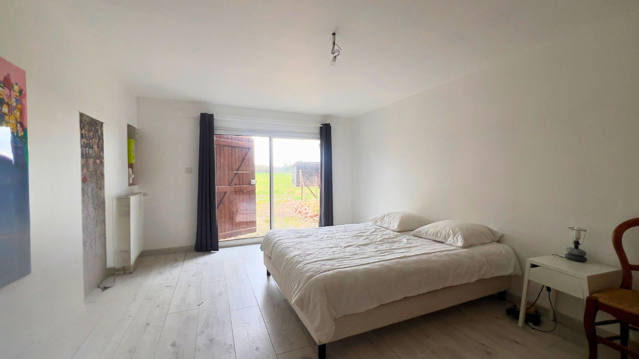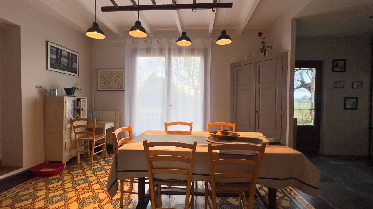 La maison, de style ferme rénovée, développe une ambiance conviviale et chaleureuse. La cuisine ouverte s’articule naturellement autour de l’espace salle à manger, formant une pièce traversante baignée de lumière, idéale pour les moments de partage. Le salon, plus intime, est réchauffé par une cheminée qui renforce le caractère cosy de l’ensemble. Deux chambres de plain-pied composent l’espace nuit, complétées par une troisième chambre à l’étage. L’une d’elles pourrait aisément être transformée en studio indépendant, offrant une souplesse d’usage appréciable. En complément, environ 100 m² de combles restent à aménager, laissant place à de nombreux projets d’extension ou de personnalisation.
