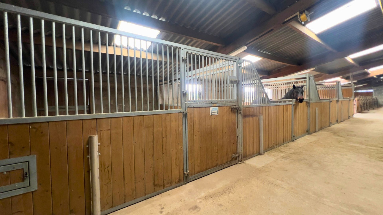 Attenant à la maison, un hangar / atelier d’environ 120 m² mène directement à une vaste écurie, conçue pour un usage pratique et confortable au quotidien. Celle-ci comprend quatre boxes équipés d’abreuvoirs automatiques, chacun ouvrant sur son propre paddock, ainsi qu’une stabulation d’environ 70 m² disposant également de son paddock. Une aire de pansage avec douche vient compléter les installations.