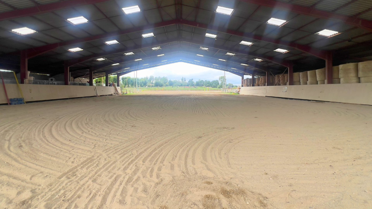 1 manège couvert de 40 x 30 m, arrosé et éclairé,