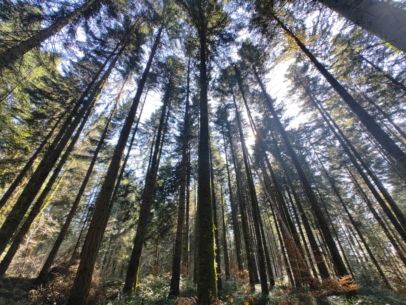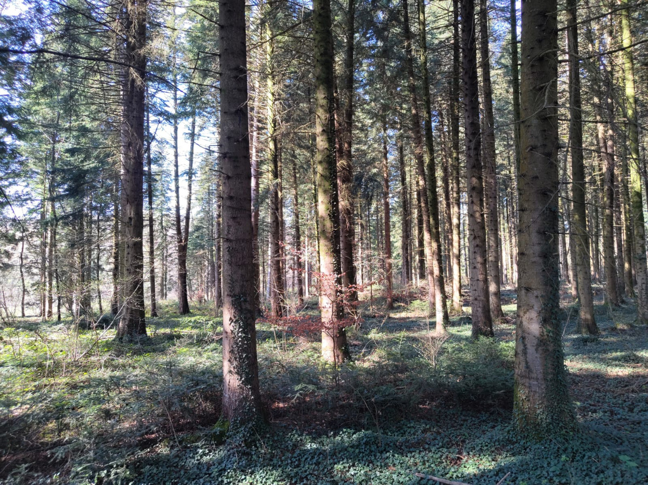 La parcelle se présente sous la forme d’une futaie régulière, dense et bien constituée, traduisant une dynamique de croissance soutenue et un entretien cohérent au fil des décennies. Le peuplement est composé d’environ 80 % de sapin pectiné et 20 % de douglas, répartition qui confère à l’ensemble une bonne stabilité et une valorisation commerciale recherchée sur le marché régional.