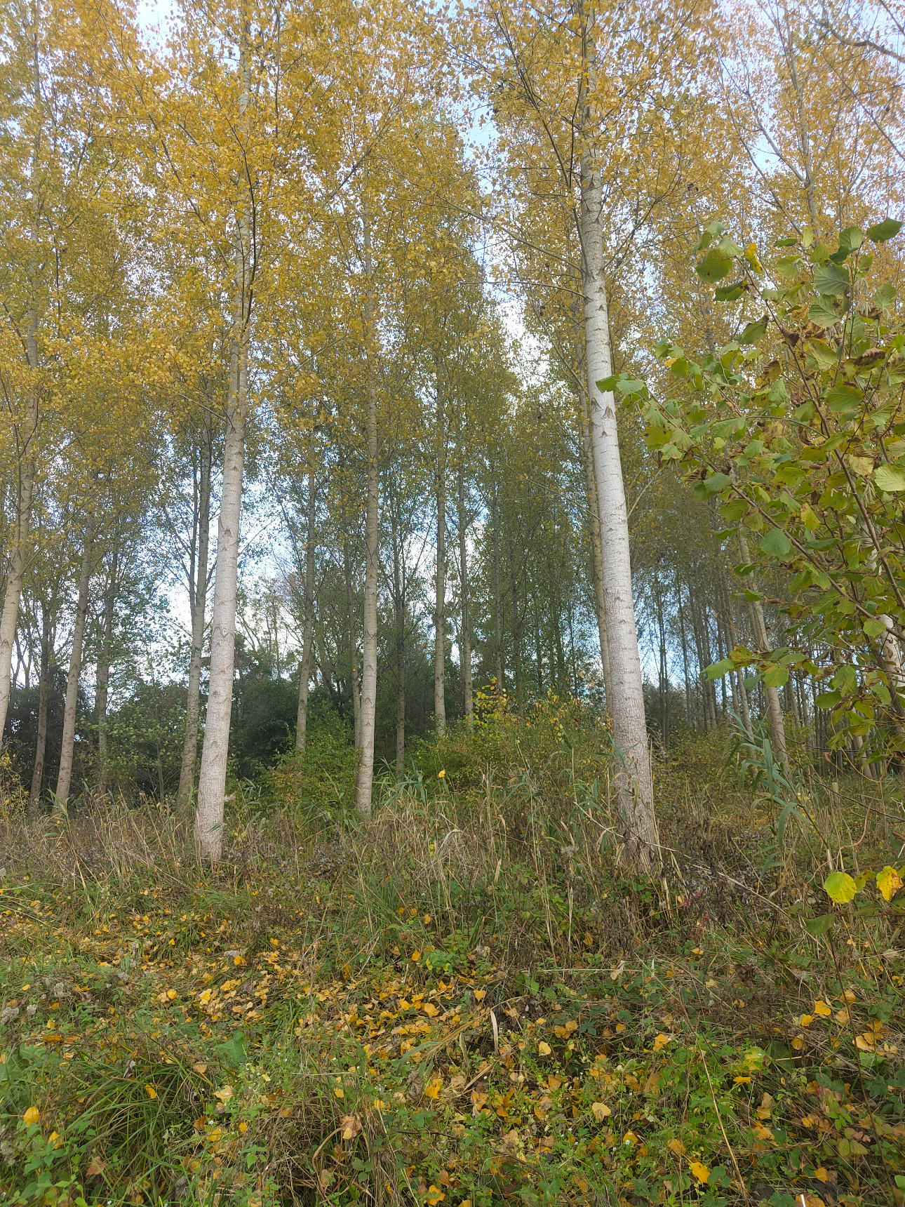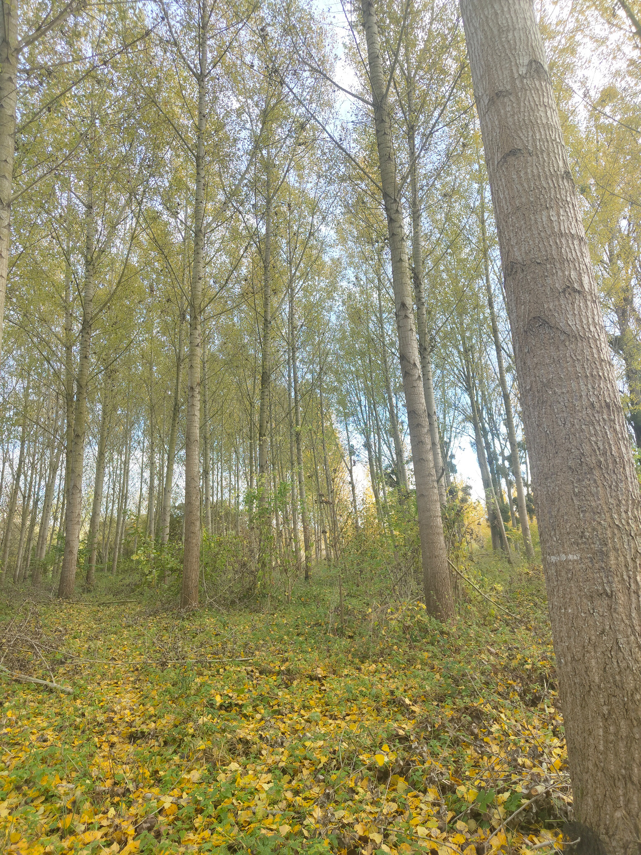 Les peupliers présentent une croissance remarquable, avec une hauteur moyenne d’environ 17 mètres et des diamètres compris entre 25 et 30 centimètres. Le peuplement est bien conformé et homogène. Des travaux sylvicoles ont déjà été réalisés, notamment un élagage soigné jusqu’à six mètres sur l’ensemble des arbres, permettant d’optimiser la qualité future des billes et leur valorisation économique.