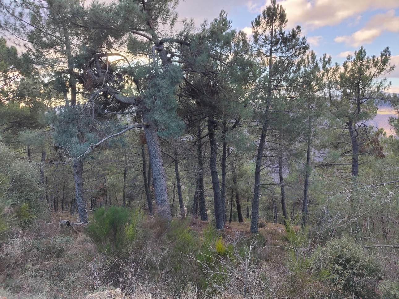 Essences et peuplements : La majorité des parcelles est occupée par des peuplements de Pin maritime. Ces peuplements se caractérisent par une structure clairsemée, avec des diamètres irréguliers et des hauteurs variables, limitant la vocation de production technologique au profit d’un rôle de couverts des sols. Le reste de la propriété est couvert de Chêne vert, essence résiliente mais sans objectif de sylviculture.