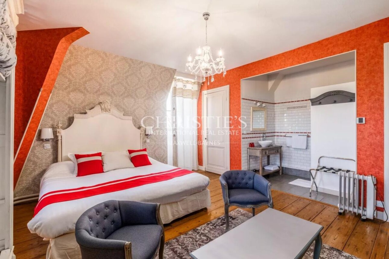 Le château dispose d'un potentiel de 10 chambres, dont 7 en chambres d'hôtes. Il y a également un splendide hall d'entrée, un bureau, un salon, une pièce pour les petits-déjeuners, une cuisine...