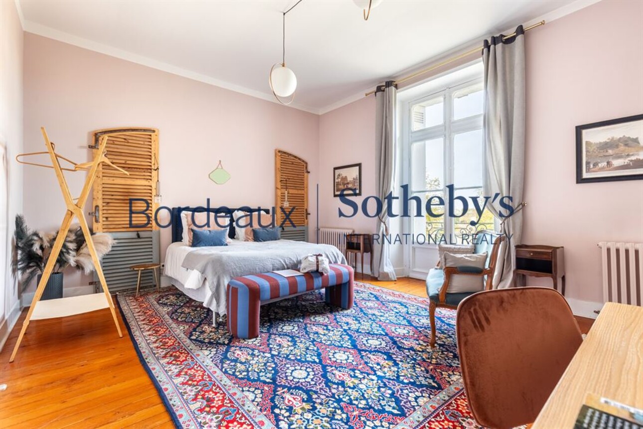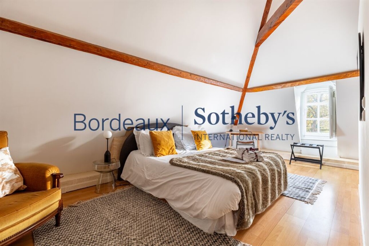 À moins de 15 kilomètres du centre de Bordeaux, cette magnifique propriété entourée de vignes bénéficie d'un emplacement exceptionnel. Après un portail en fer forgé, une cour d'accueil avec fontaine dévoile un château de 1860 au cœur d'un parc boisé agrémenté d'un étang.
