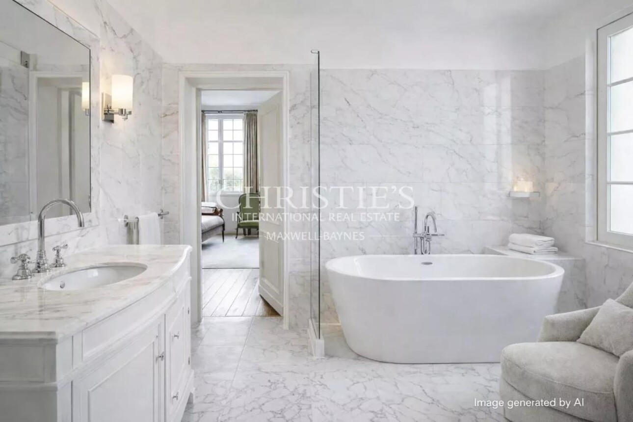 Niveau souterrain : cave à vin privée, buanderie, chaufferie, bureau lumineux avec accès au jardin. Premier étage : chambre principale avec salle de bains attenante, trois autres chambres, salle de bains familiale, deux WC supplémentaires.