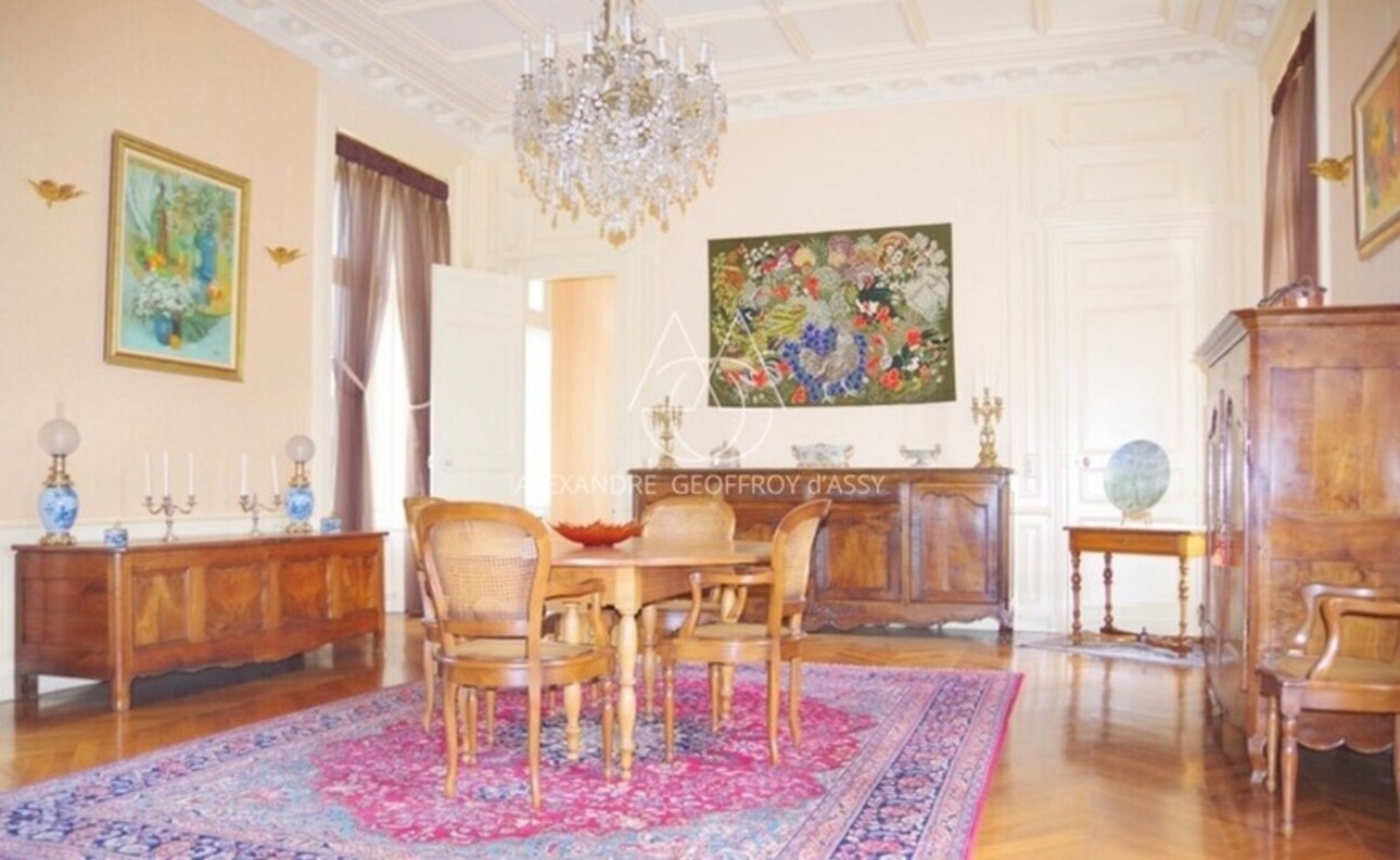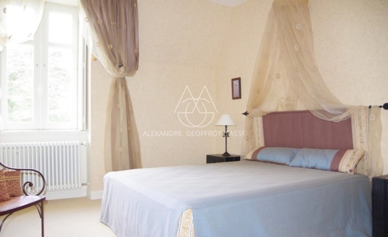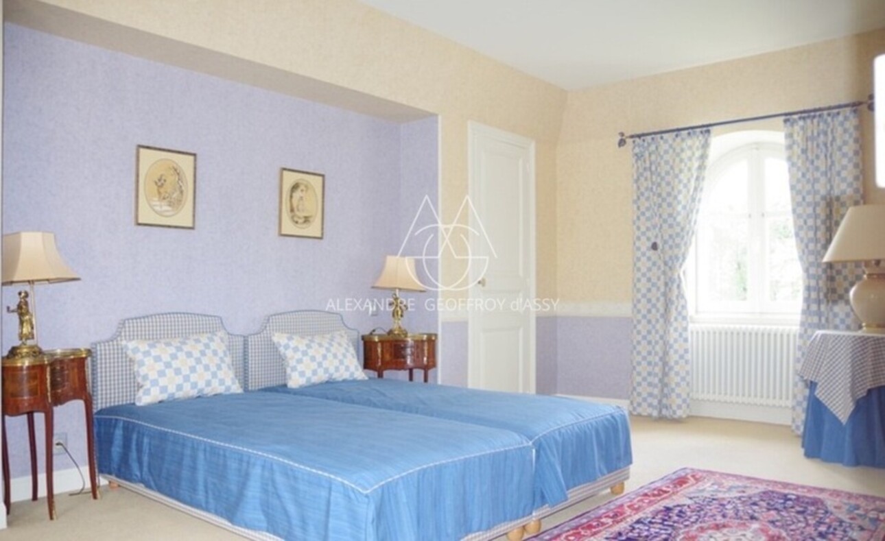 Le rez-de-chaussée se distingue par ses espaces raffinés : un hall d'entrée agrémenté d'un remarquable escalier en chêne à balustrades, un double salon, un salon avec bibliothèque et une salle à manger. Tous ces espaces présentent des parquets nobles, des cheminées et des boiseries qui ajoutent au caractère unique des lieux. On y trouve également une cuisine entièrement équipée avec des appareils haut de gamme, une buanderie et des toilettes. À l'étage, une suite principale incluant un dressing et une salle de bains avec toilettes s'accompagne de deux chambres, chacune dotée de sa propre salle d'eau et wc. Une autre suite propose deux chambres, un salon, ainsi que deux salles de bains avec wc. Le deuxième étage complète l'ensemble avec quatre chambres, dont deux équipées de salles d'eau et wc, ainsi qu'une salle de bains principale avec wc. Chaque niveau du château offre environ 200 m² de surface habitable. Les dépendances incluent plusieurs édifices remarquables : une maison d'invités d'environ 290 m² comprenant garages au rez-de-chaussée et, à l'étage, un salon/salle à manger, une cuisine, une salle de jeux (billard), quatre chambres et trois salles d'eau avec quatre wc. Un bâtiment construit en 2003 abrite une piscine de 10 x 5 m accompagnée d'espaces dédiés à la remise en forme et des installations sanitaires comprenant trois douches avec wc.