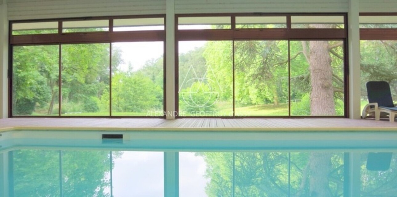 L'ensemble est complété par une dépendance comprenant une piscine et une salle de sport offrant une vue imprenable sur la nature environnante.