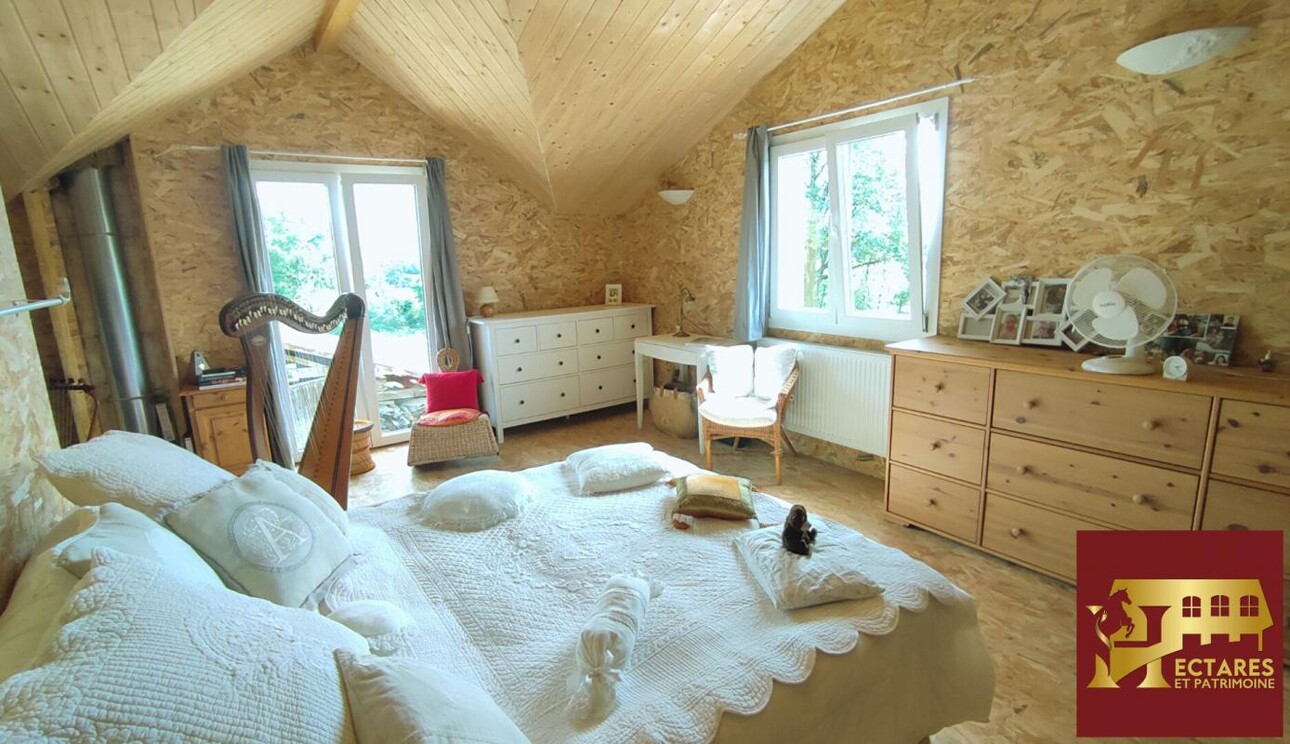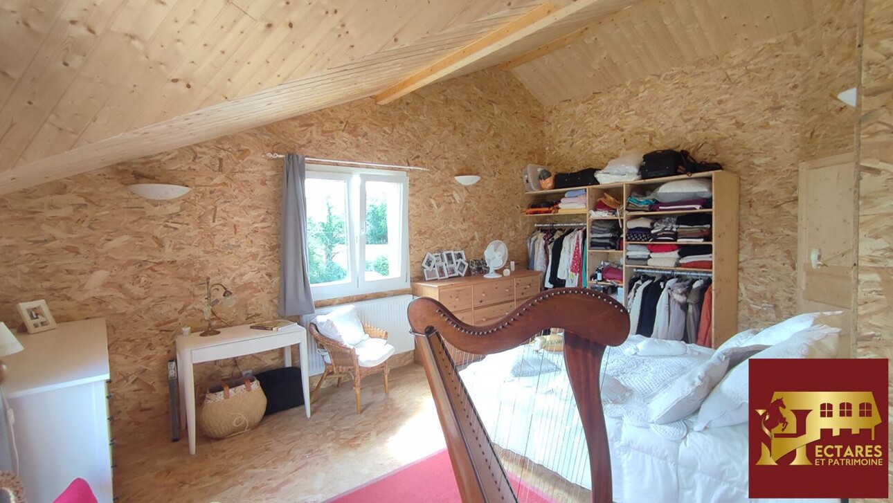 L'étage, prévu pour accueillir 2 studios indépendants avec terrasses donnant sur les prés, reste à aménager (eau, électricité, tirés). Beau potentiel selon vos besoins ou projets.