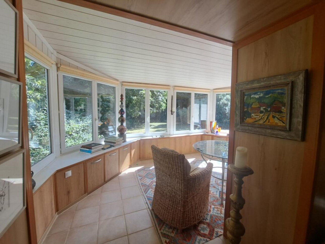Un séjour chaleureux avec sa cheminée, baigné de lumière par sa véranda.