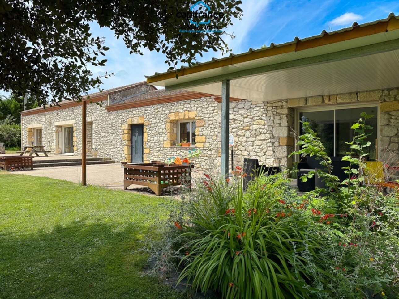 Nichée au bout d'un chemin, le seul voisin le plus proche à 500 m, au milieu d'un paysage rurale et paisible, avec des vues lointaines, un bel ensemble immobilier en pierre d'une m...