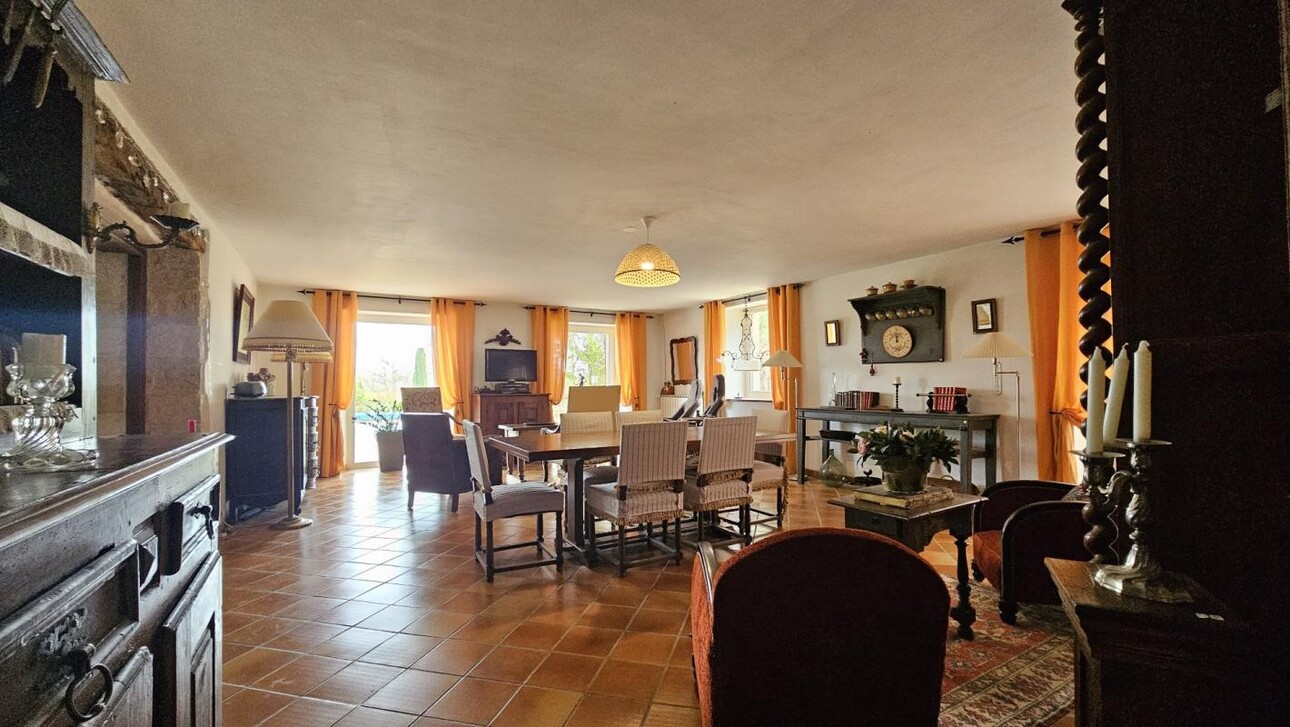 Pour suivre, un spacieux living-salle à manger de 54 m² éclairé d'une belle lumière extérieure au travers de plusieurs baies vitrées; cet espace accueillant donne vue sur la piscine 12 x 5,50 et un joli panorama de la campagne avoisinante. De là, s'ouvre une large arcade donnant sur une vaste cuisine équipée et agencée avec îlot central, de 22 m² qu'un cellier en arrière cuisine vient compléter.