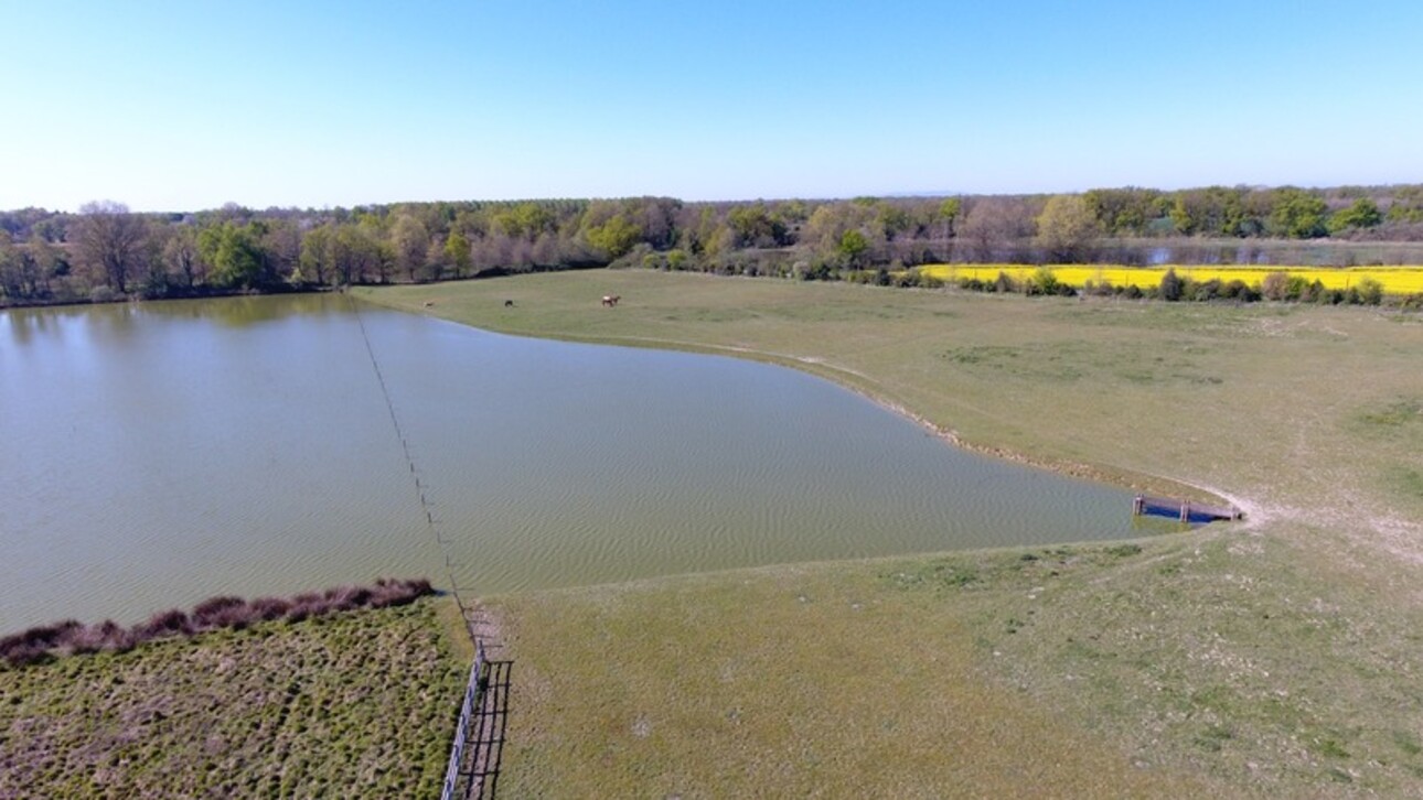 Au cœur de la Dombes, à 45 minutes de Lyon, au calme, sans voisins, propriété de 35 hectares d'un seul tenant, avec 1 premier étang d'environ 6 hectares en face de l'habitation permettant l'élevage des carpes et un deuxième alimenté par un puits artésien destiné à la pêche sportive, un bois de chênes, des prairies pour les chevaux, une maison principale de type F14 entièrement rénovée d'environ 500 m². 6 chambres dont une suite de plain-pied. Air conditionné dans le salon et les chambres. 230 m² de dépendances dont 2 garages. La propriété est bordée d'environ 2 km de barrières en ciment blanches. Une piscine chauffée de 15 x 6 m équipée d'un volet roulant, 1 tennis, 6 boxes pour les chevaux, 1 poulinière, 1 stabulation de 630 m². 16 photos sur simple demande. Les honoraires sont à la charge du vendeur.