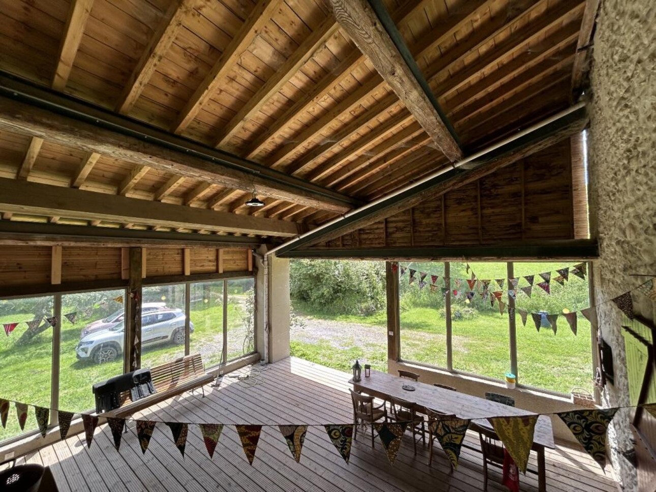 Dès l'entrée, vous serez accueilli par un vaste salon/salle à manger de 100m², idéal pour recevoir famille et amis. La cuisine, équipée d'un ancien four à pain, ajoute une touche de tradition à cet espace convivial. Une superbe véranda-terrasse exposée plein sud offre un cadre idyllique pour profiter des journées ensoleillées.
