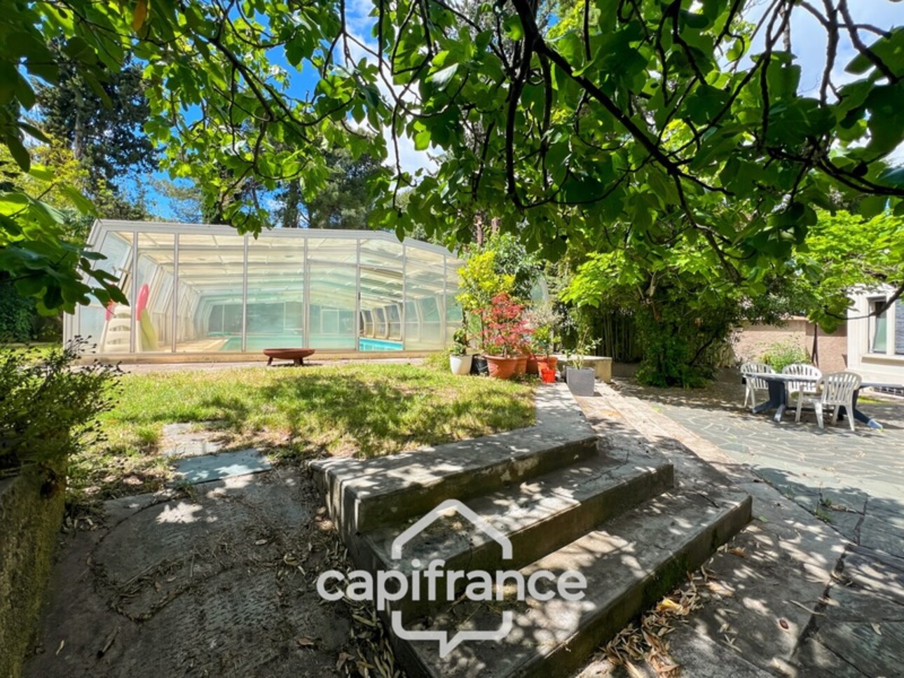 Côté sud, une large terrasse couverte invite à la détente et donne sur l'espace piscine dans un environnement préservé et intimiste.