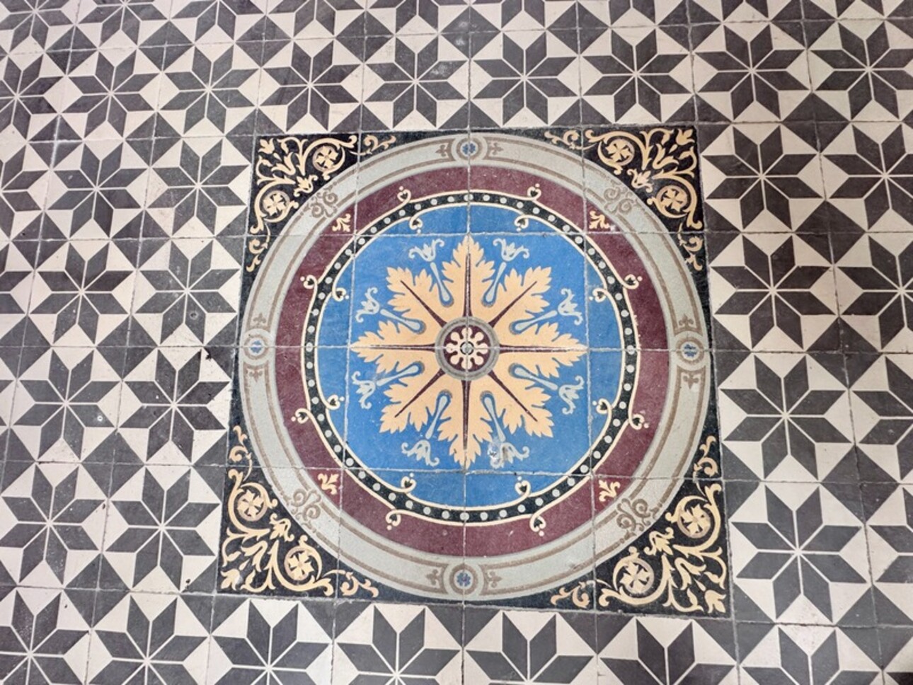 • Hall d'entrée central avec escalier tournant menant jusqu'au grenier