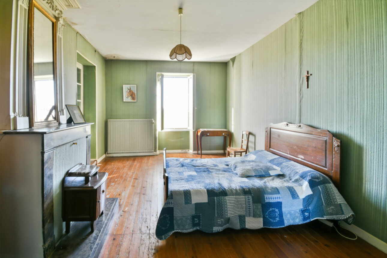 La maison offre un séjour lumineux, une cuisine fonctionnelle, 4 chambres (dont une au rez-de-chaussée), une salle d'eau, des toilettes, une entrée, ainsi qu'une chaufferie/buanderie/cellier. Les dépendances, d'une surface totale d'environ 600 m², offrent une multitude de possibilités d'aménagement. Le tout est complété par un vaste terrain de plus de 3 hectares, idéal pour les amoureux de la nature et des grands espaces.