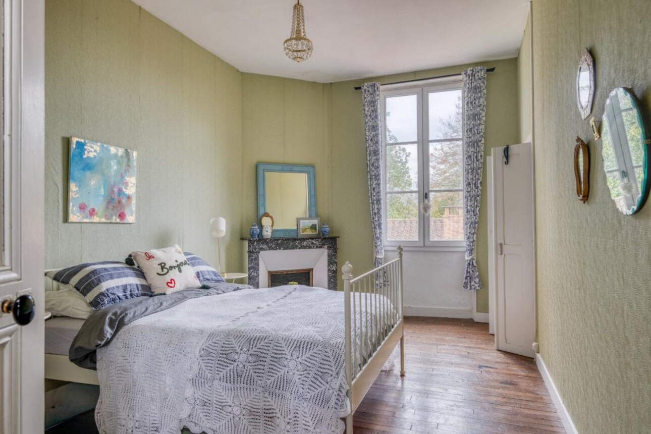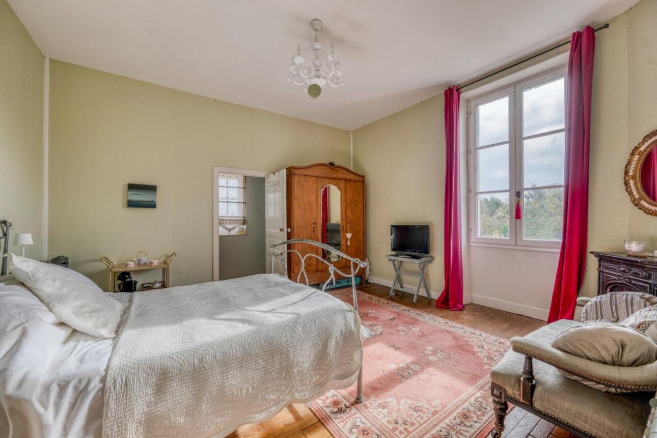Les chambres conservent leur parquet d'origine, disposent de plafonds hauts et sont lumineuses, avec de superbes vues sur la ville et la campagne. Il y a également une grande salle de bains familiale avec baignoire, douche séparée et WC. De plus, une salle d'eau est partagée entre deux des chambres, et il y a deux WC séparés.