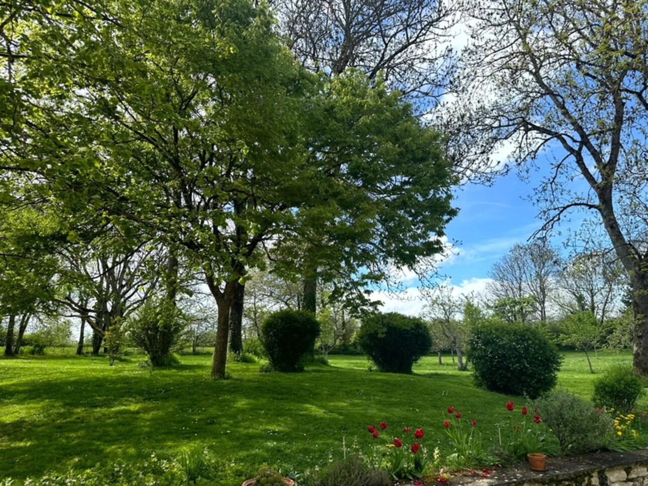 Magnifique parc arboré d'environ 10 000 m² offrant calme, intimité et cachet historique grâce à la présence d'anciennes murailles.