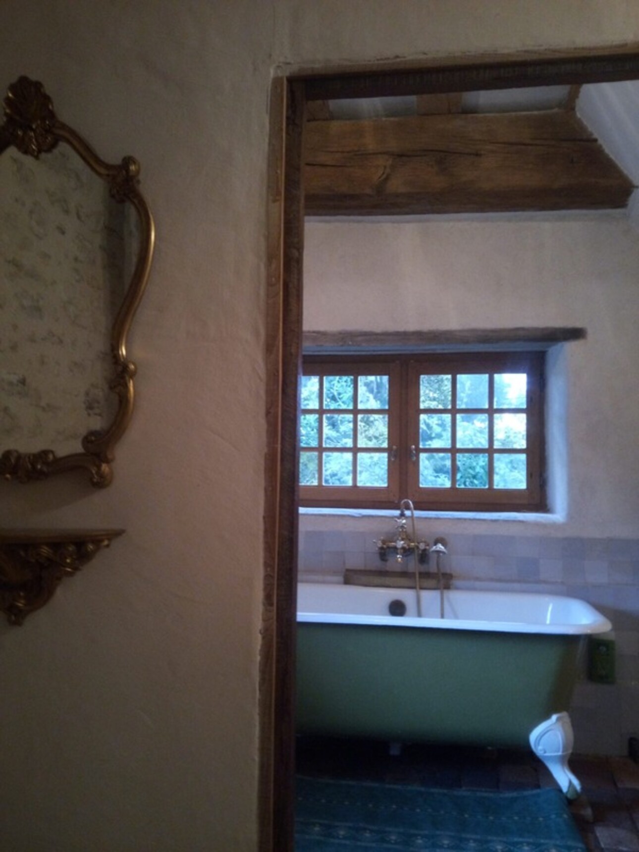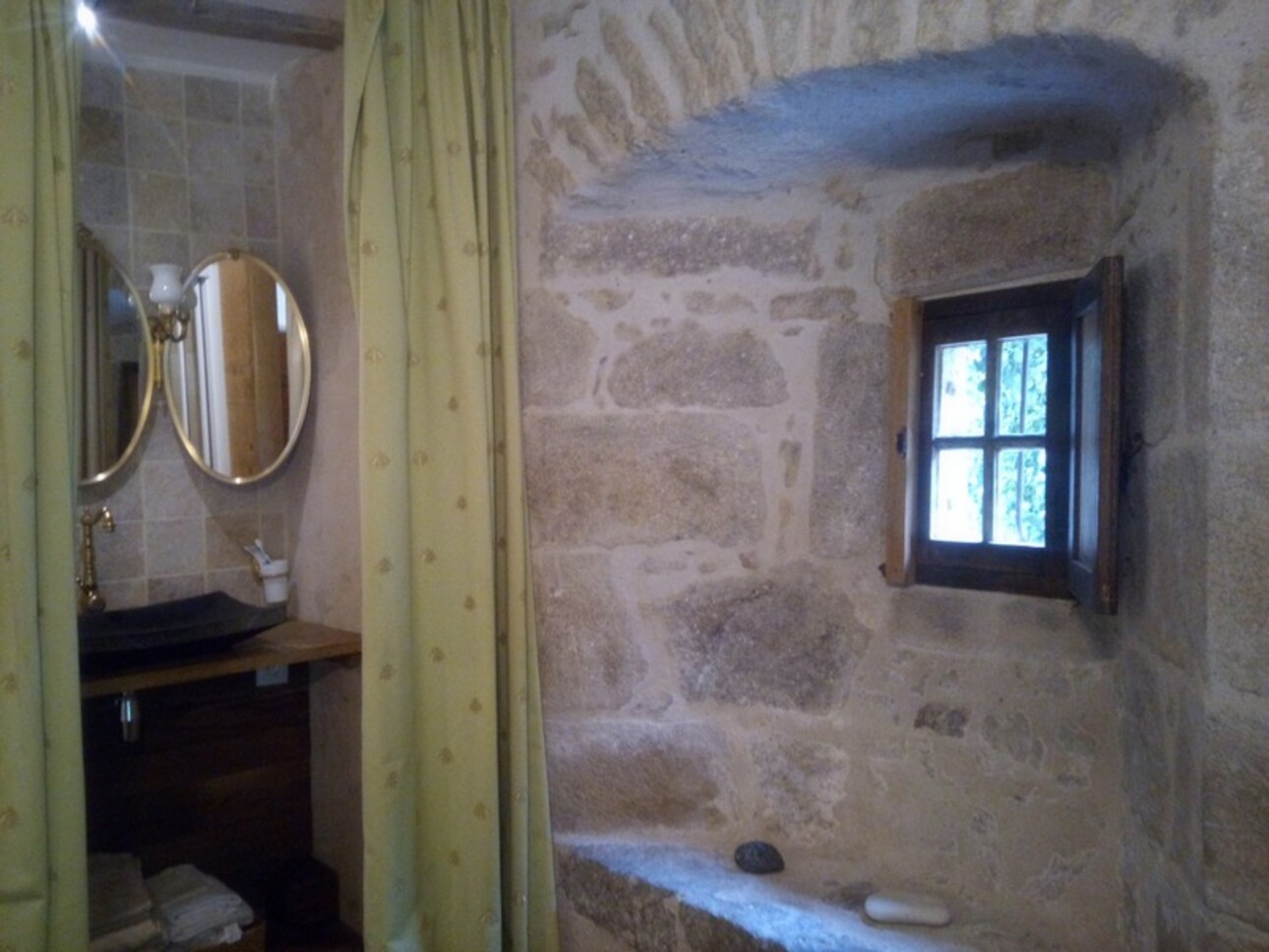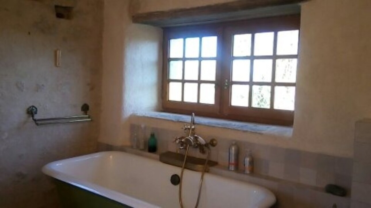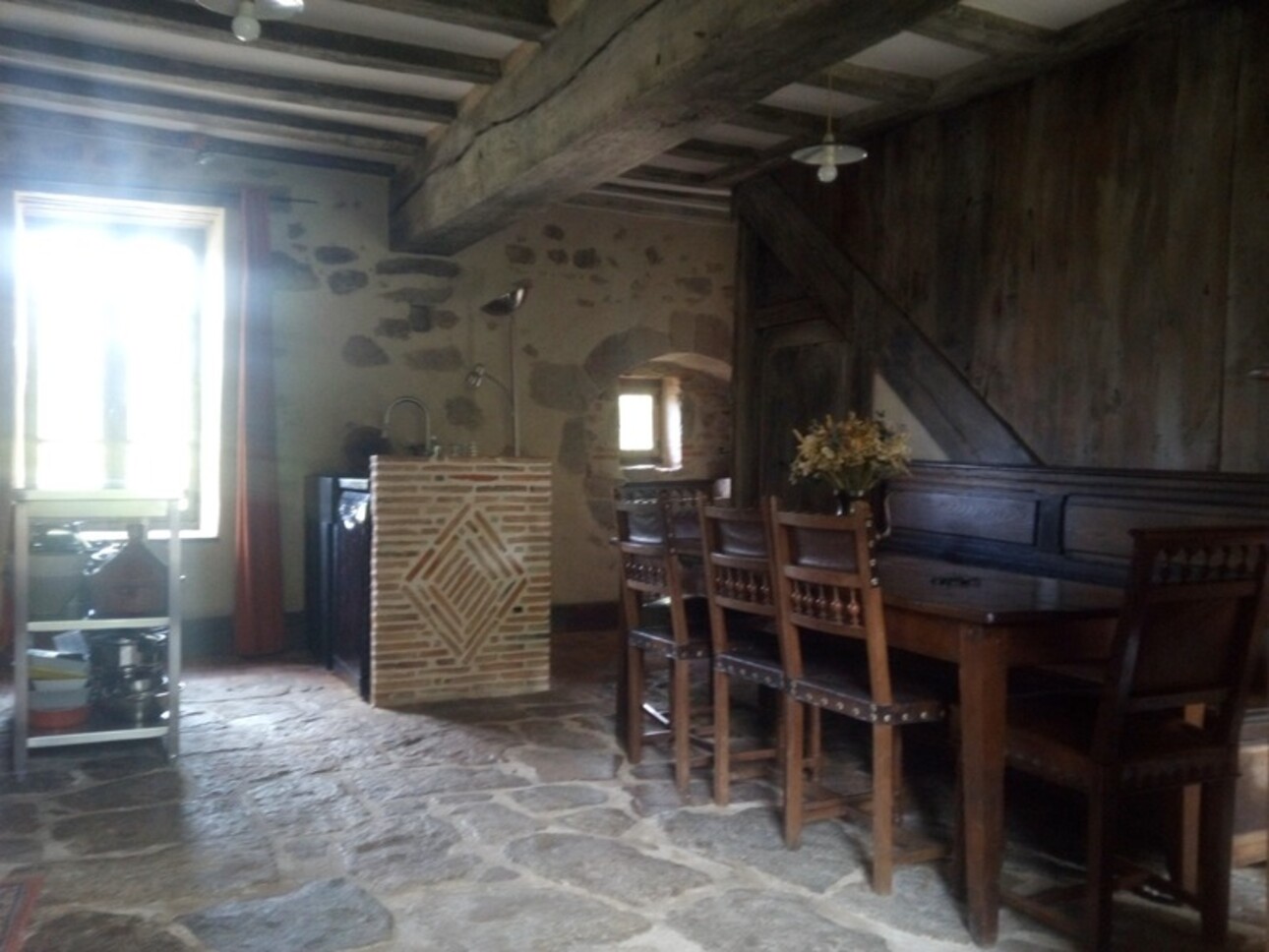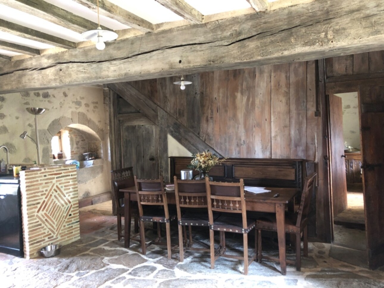 Les beaux matériaux donnent de l'authenticité à la demeure : parquet, tomettes anciennes en terre cuite, poutres apparentes, fenêtres cintrées avec coussièges, cheminées, poêle norvégien, poêle Godin, pierres de travertin....